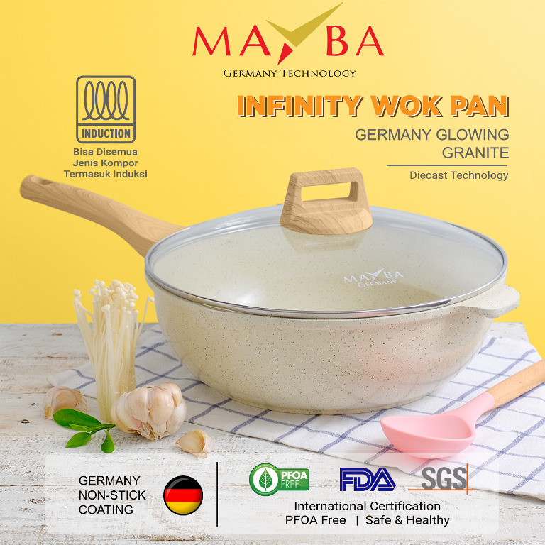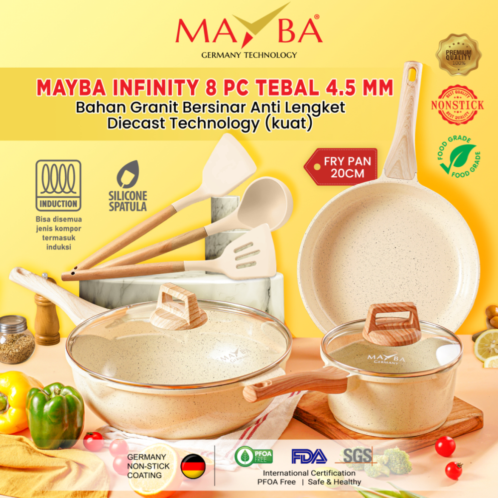MAYBA INFINITY 8 PCS Panci set lengkap glowing granit anti lengket wok fry saucepan lid+3 spatula