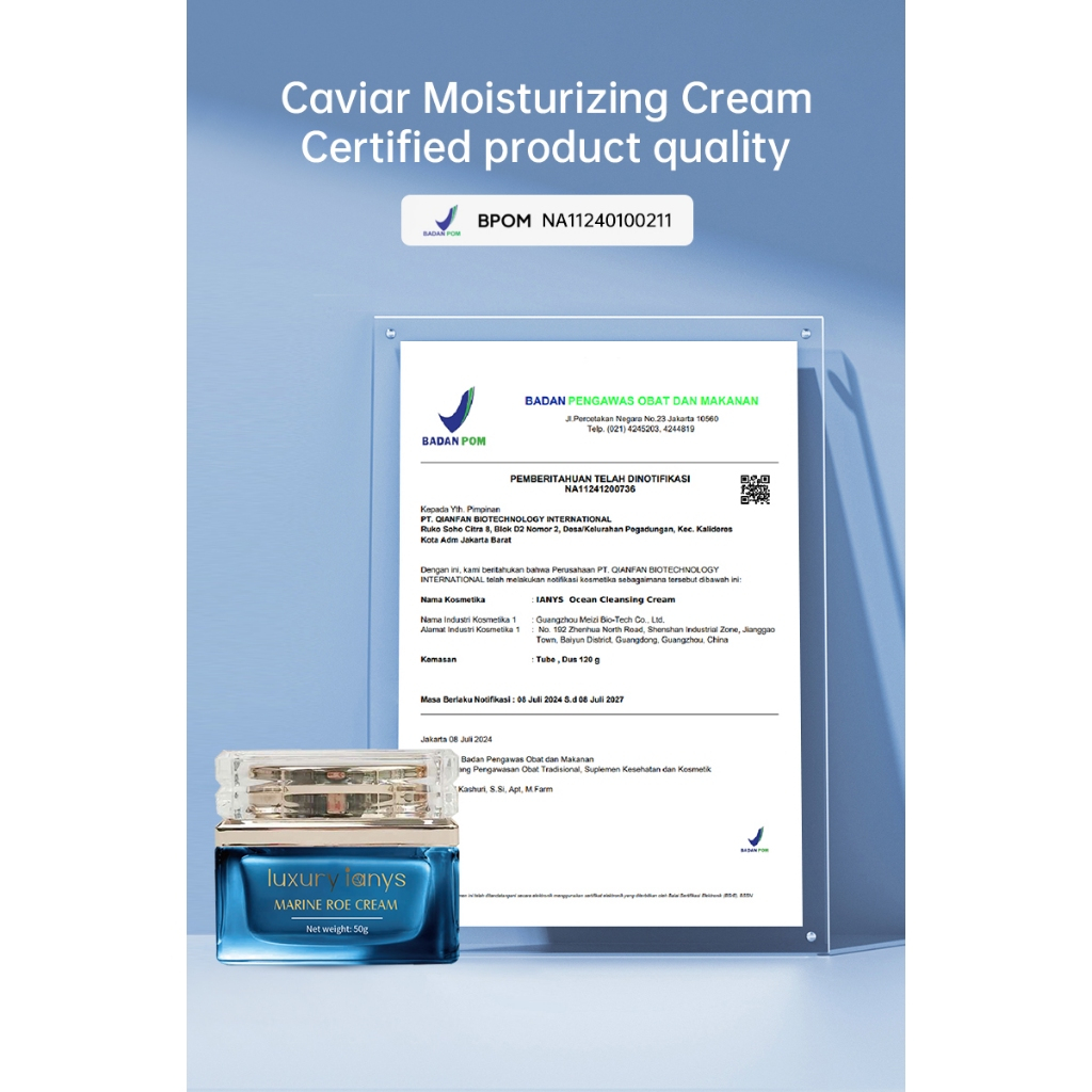 luxury ianys Marine Caviar Moisturizer 50g Brightening Cream untuk Kulit Rusak Gelap Melembapkan Anti-Aging izin BPOM skin barrier