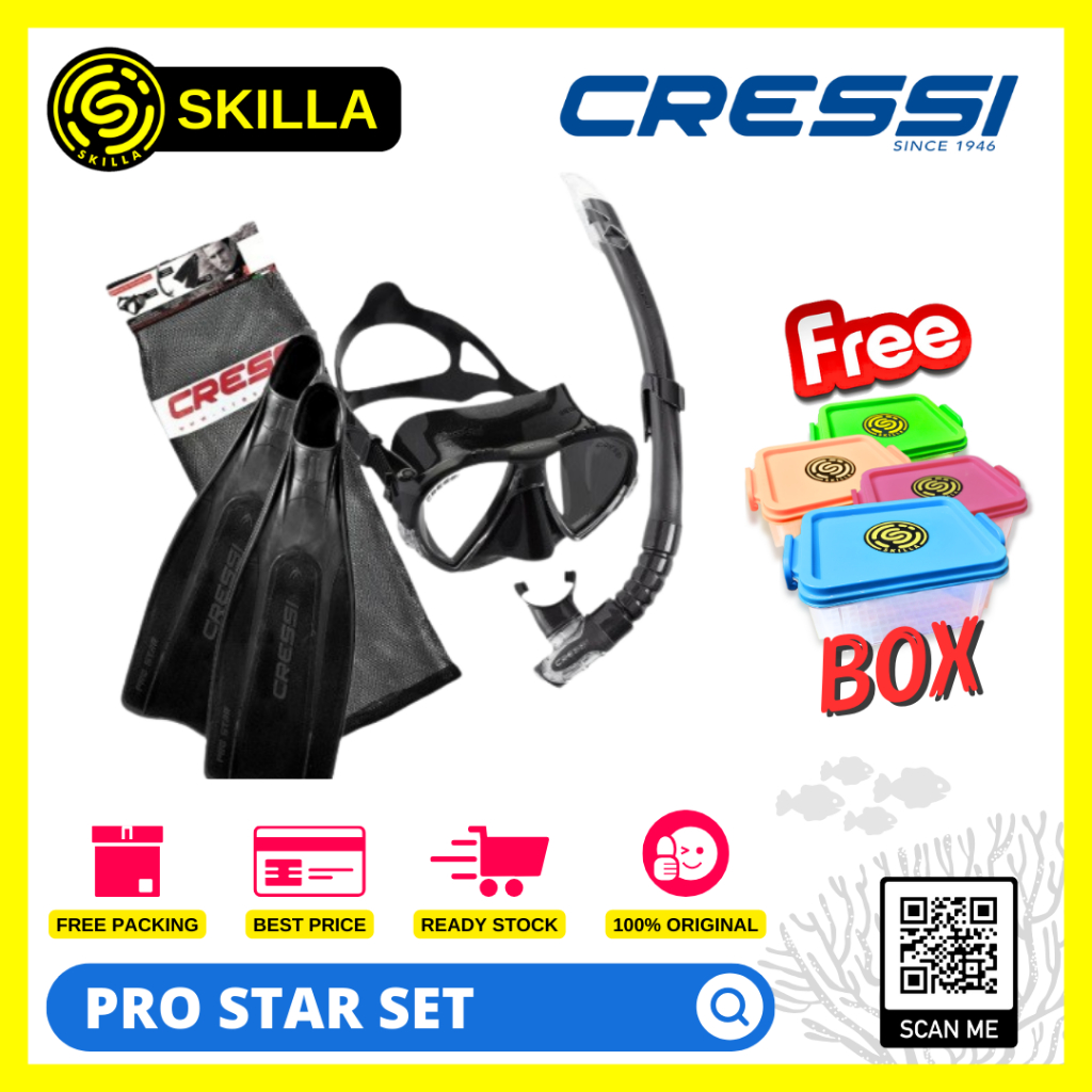 Cressi Pro Star Matrix Gamma Combo Fins Mask Snorkel Set Diving