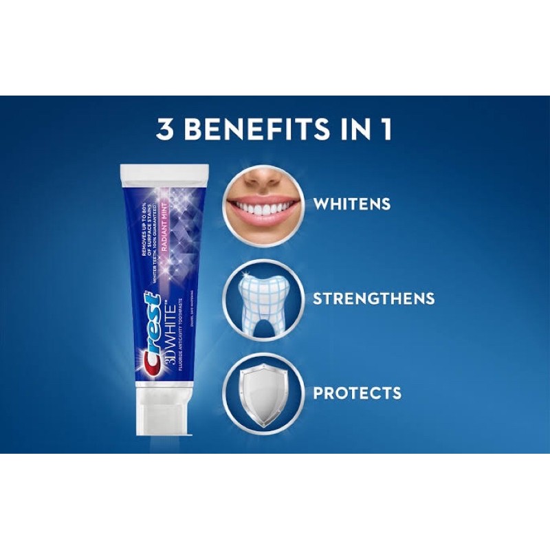 Crest 3D White Radiant Whitening Toothpaste - Mint/Glamorous White/Artic Fresh/Charcoal / Pasta Gigi