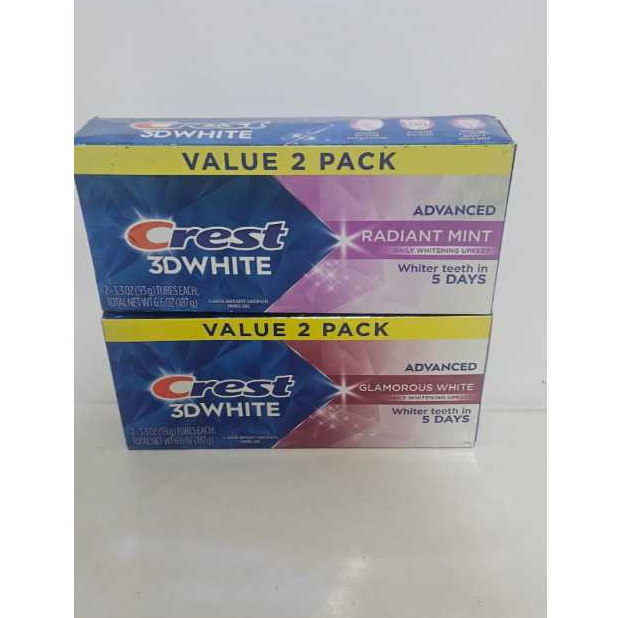 Crest Toothpaste 3D White Advanced Glamorous White or Radient Mint 107 gram x2 value pack