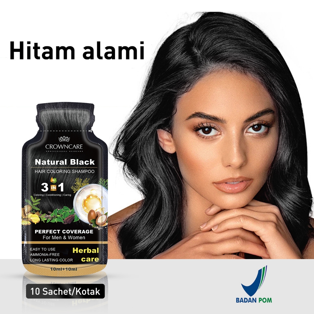 Crowncare Hair Colour Natural Pewarna Rambut, Pewarna Rambut Herbal Sachet Tanpa Alergi 20ml/Sachet , Bubble Hair Color Foam Cat Pewarna Rambut,Hitam alami & Coklat gelap
