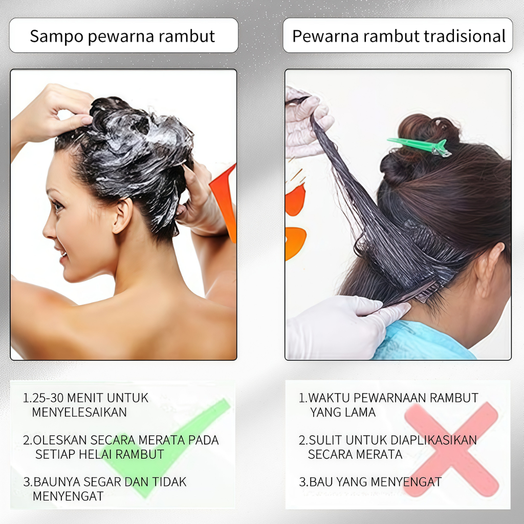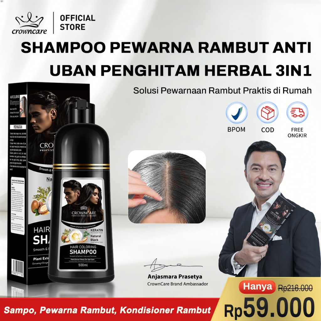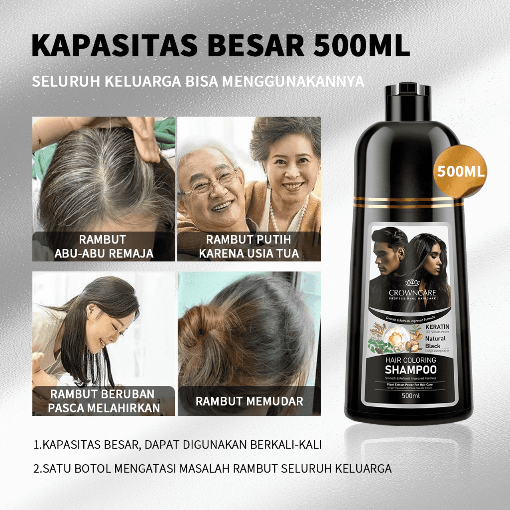 Crowncare Shampoo Pewarna Rambut 500ml - Shampo Penghitam Uban Herbal 3-in-1 | Pewarna Rambut Alami Coklat Tua & Hitam, Menutrisi Rambut, Aman untuk Pria & Wanita, Keramas Sekaligus Mewarnai Rambut Tanpa Amonia 200ml