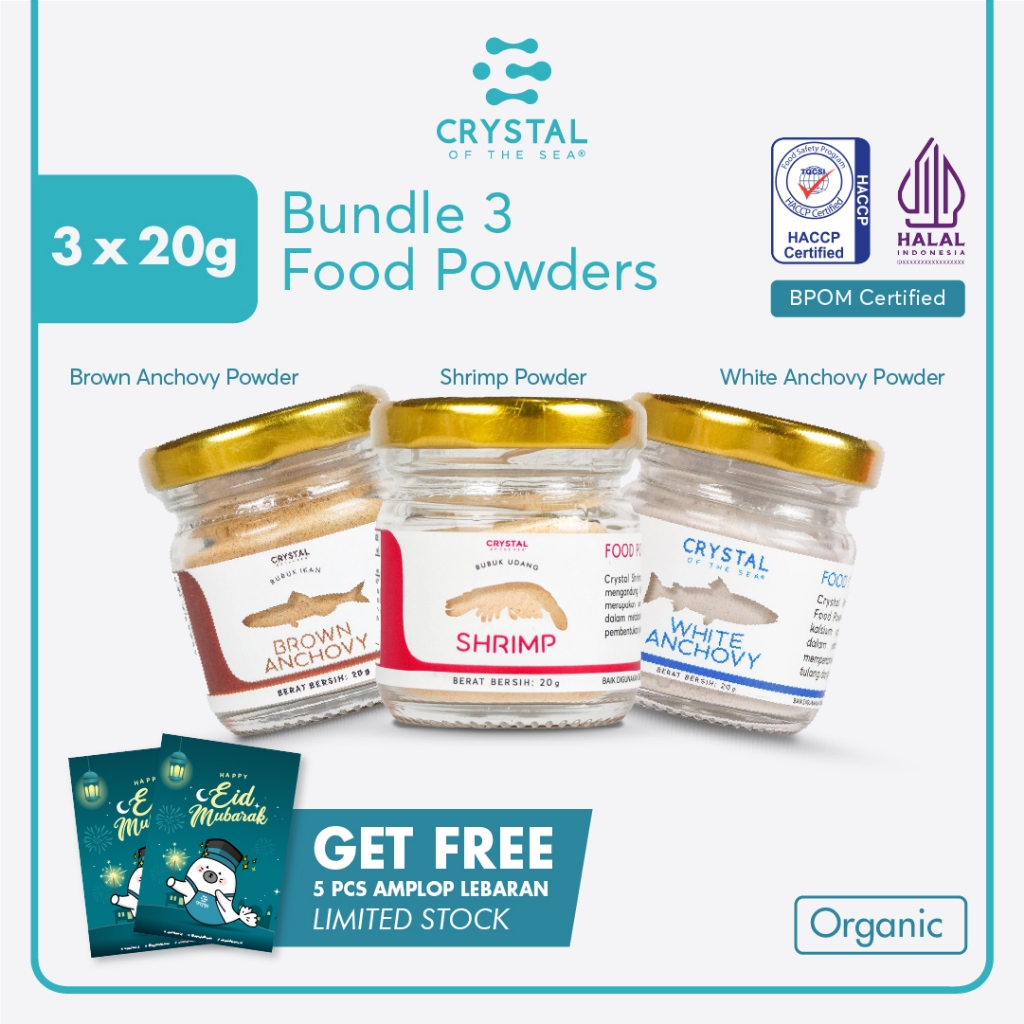 Crystal of the Sea | Bundle 3 Food Powder (20GR) | Bubuk Ikan Teri Nasi | Bubuk Udang Rebon | Bubuk Teri Jengki - Tabur / Penyedap Kaldu MPASI NON MSG PAKET HEMAT