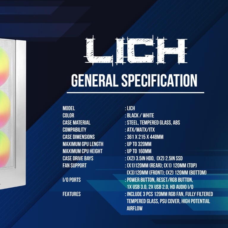 Cube Gaming Lich White Include 3 Fan RGB ATX Gaming Case