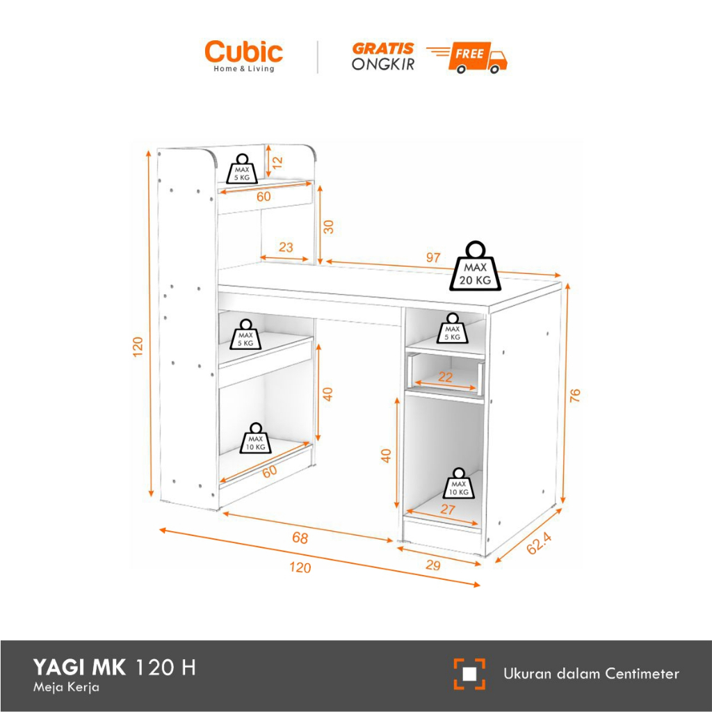 Cubic Meja Kantor / Meja Kerja / YAGI MK 120 H