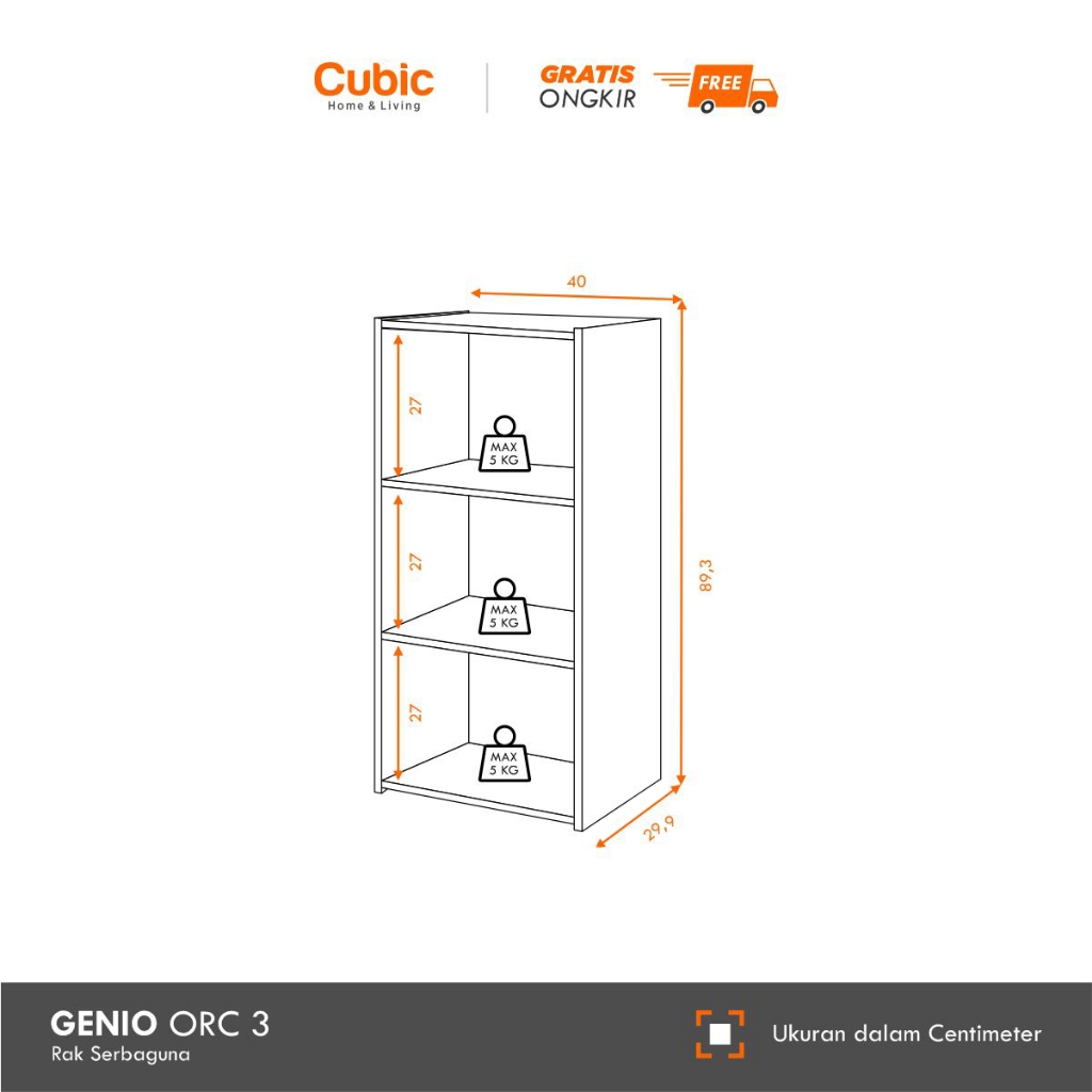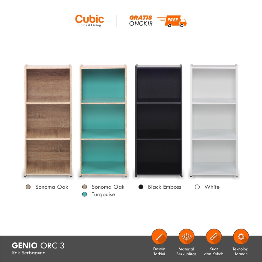 Cubic Rak 3 Susun Minimalis / Lemari Buku Serbaguna / GENIO ORC 3 - Motif Kayu
