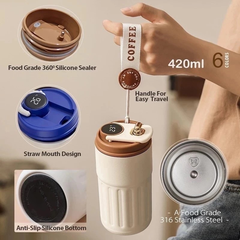 CucuLemon Termos Kopi Digital LED 450ml Tumbler Stainless aesthetic Botol Minum Gelas Kopi Mini