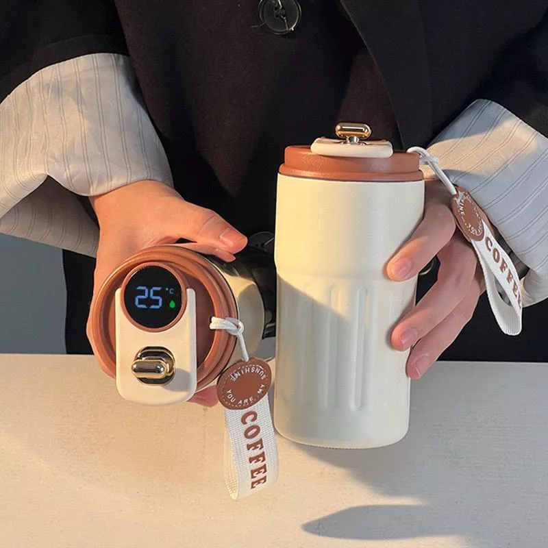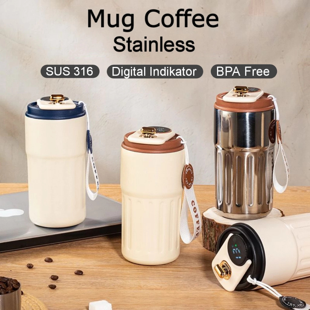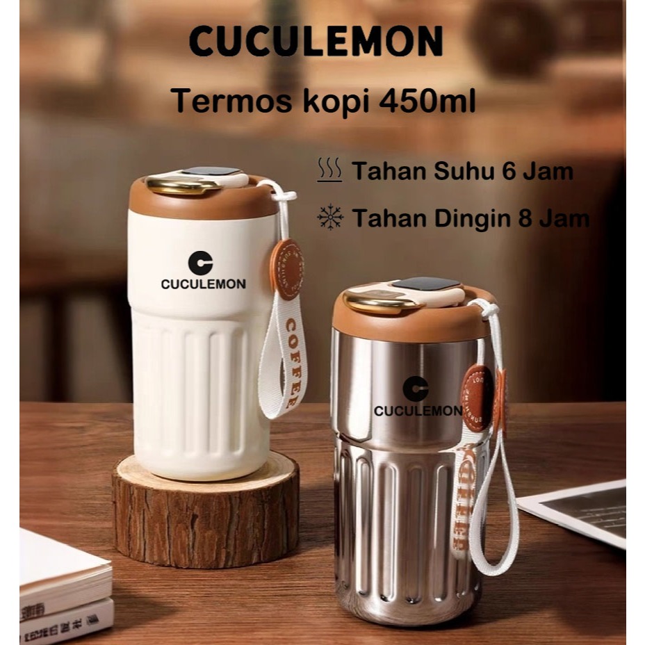 Cuculemon Tumbler Stainless Digital LED 450ML Bottle Kopi Aesthetic Termos Air Kopi Panas Botol Minum