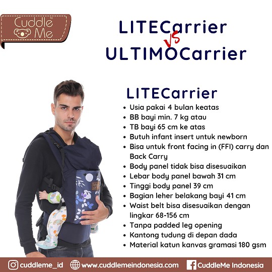 Cuddleme | Cuddle me Lite Carrier | gendongan bayi SSC- BOX/DUS DILIPAT | SSC Gendongan M SHAPE Gendongan Ergonomis | Gendongan Bayi Aman / Baby Carrier M Shape Original Solid & Motif lucu dan menarik