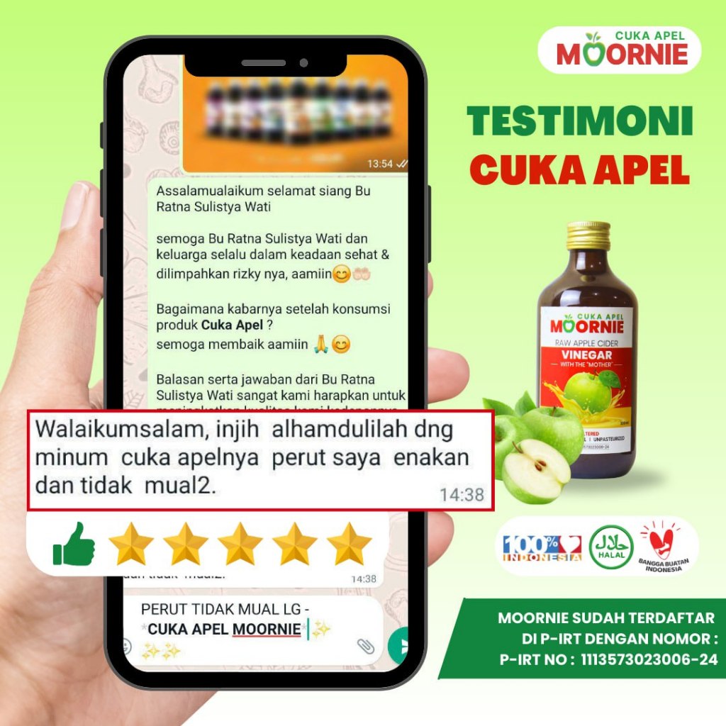 Cuka Apel Moornie With Mother Original Apple Cider Vinegar 100% Murni Apel Utuh Diet Kesehatan