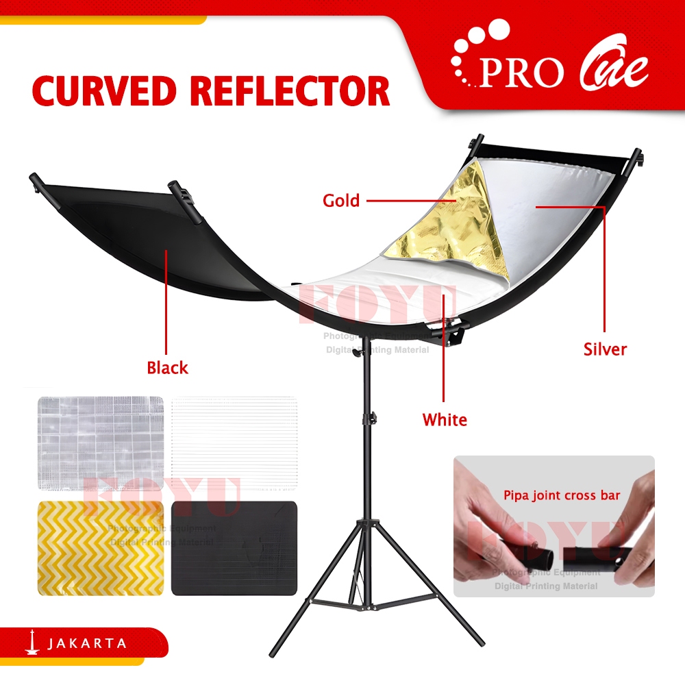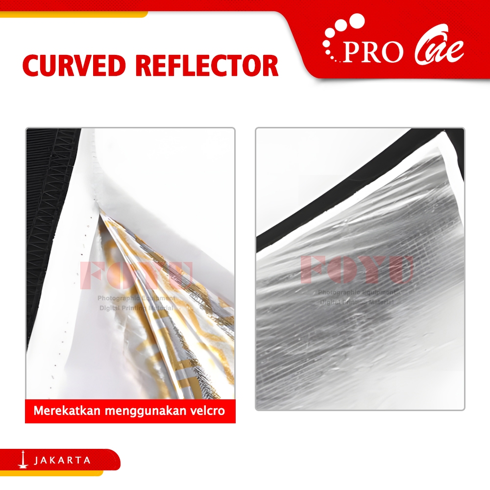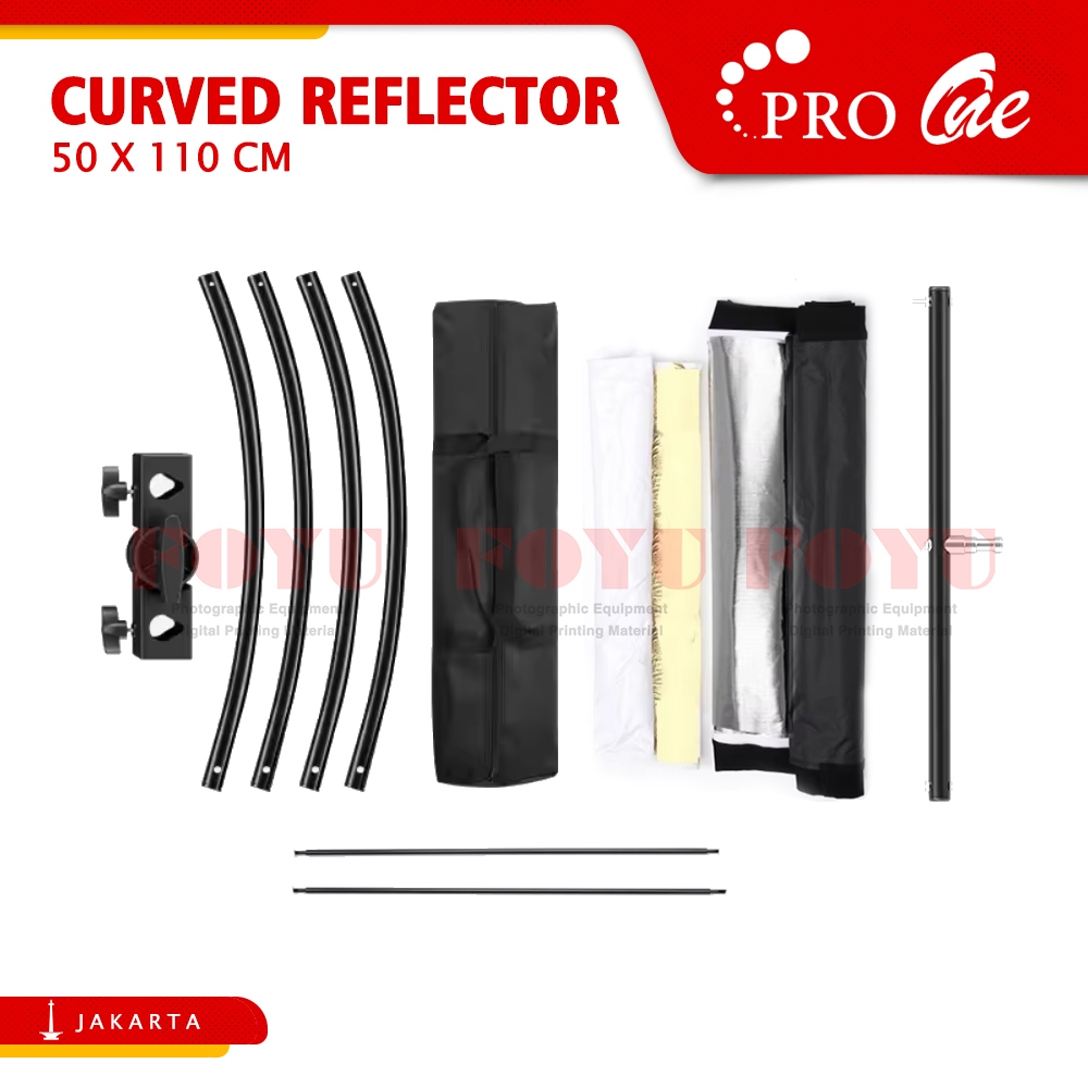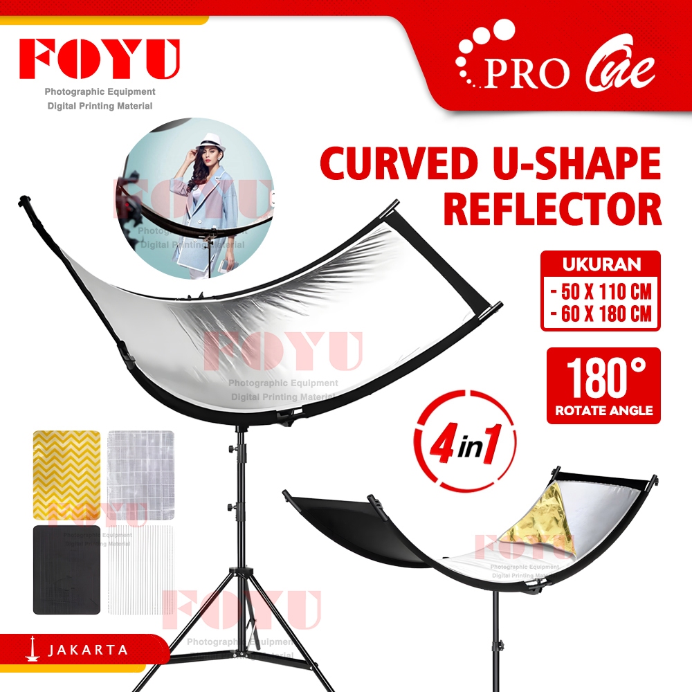 Pro One Curved Reflector U Shape Papan Reflektor Melengkung Cahaya Studio Foto Pemantul 4in1 4 Warna 50x110 60x180 Cm