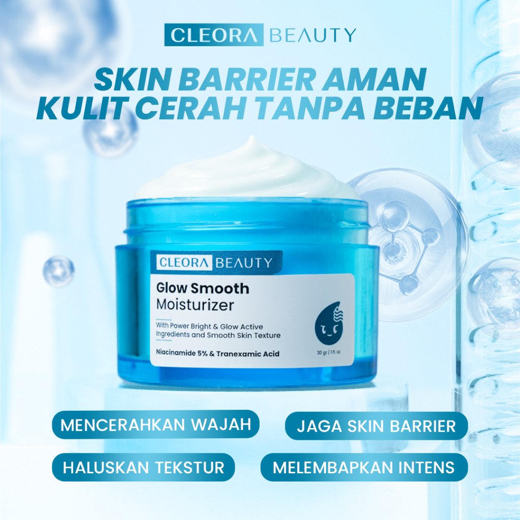 [SPESIAL PROMO] Cleora Beauty Glow Smooth Moisturizer - Skin Barrier Mosturizer Pelembab Muka Kering Dan Kusam Glowing Mencerahkan Kulit Brightening Skincare Pemutih Wajah Dark Spot with Niacinamide Day Cream and Night Scincare Gel Pria Dan Wanita