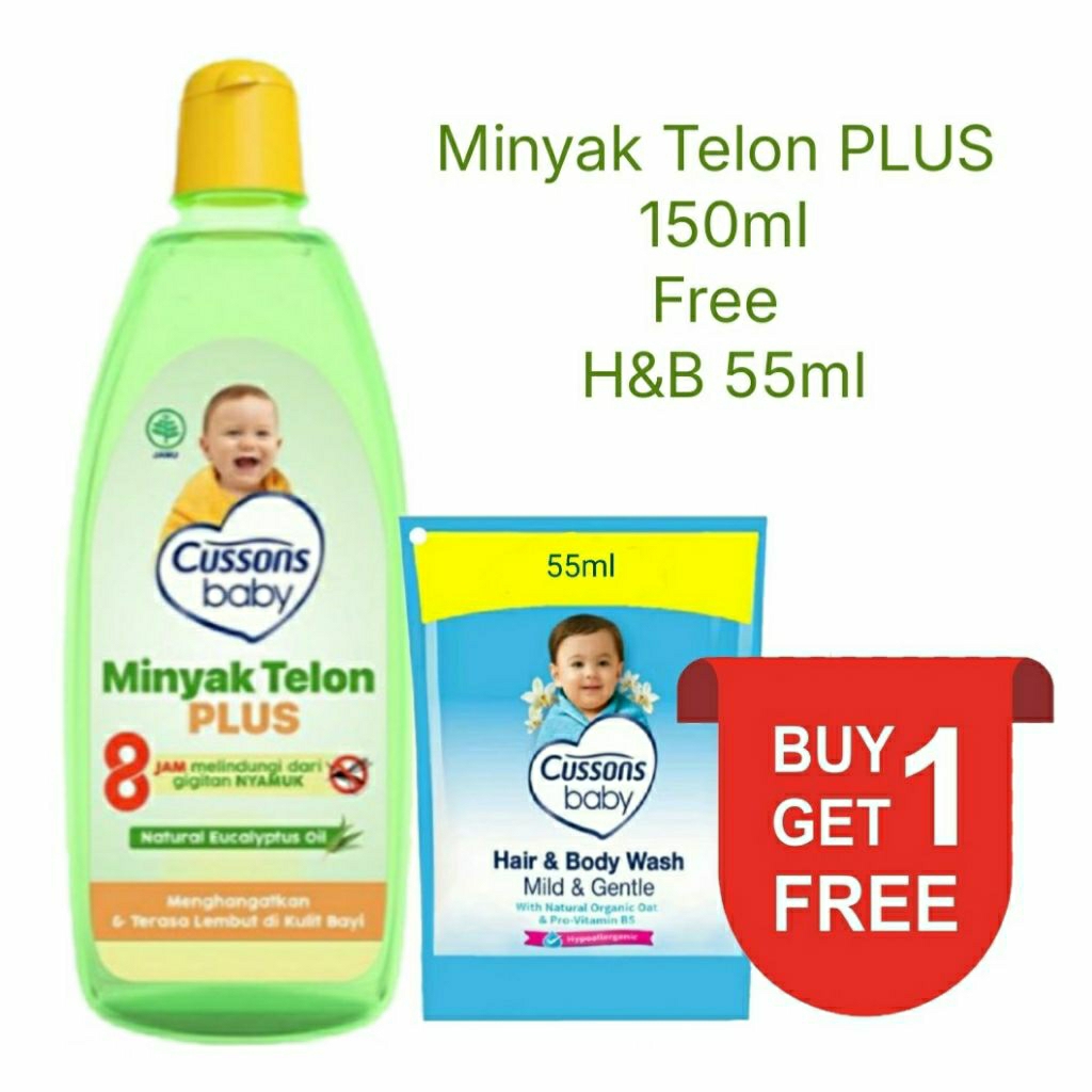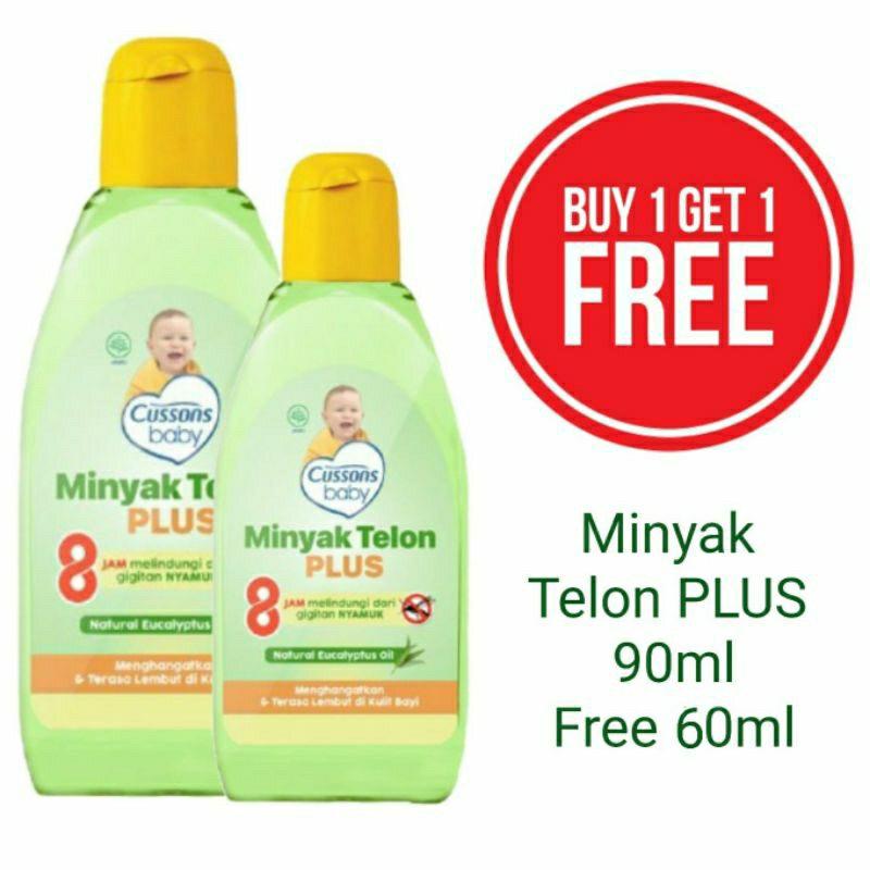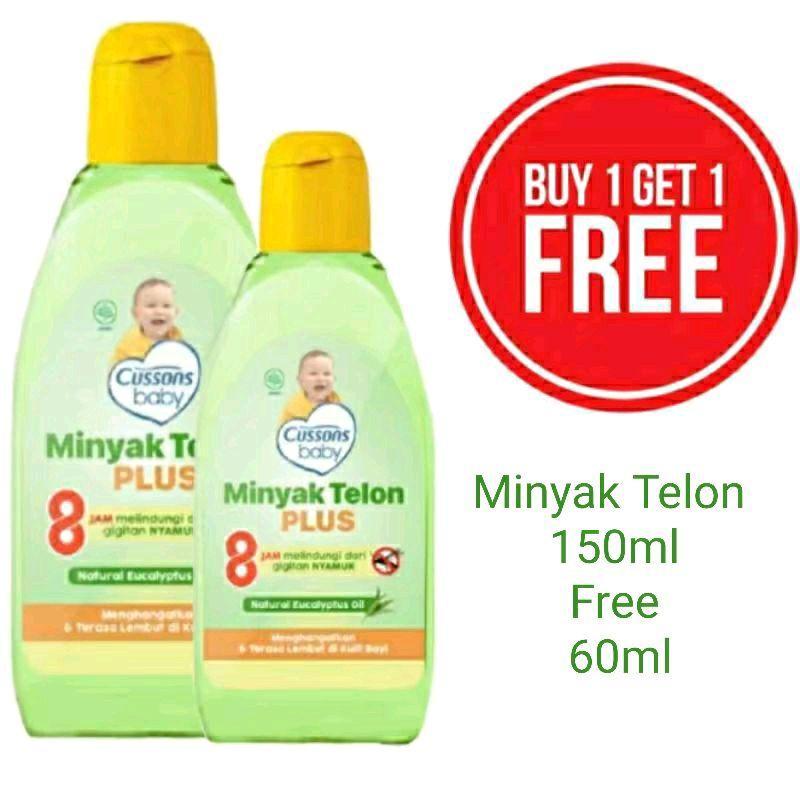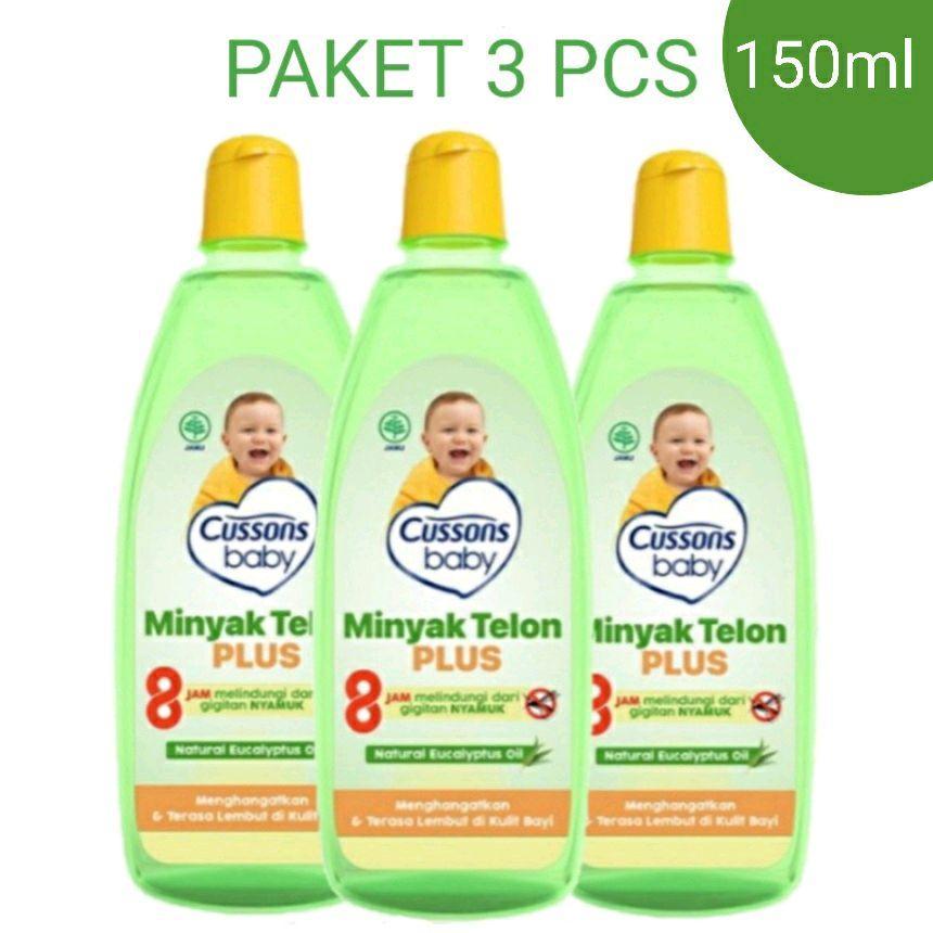 (PAKET 3 PCS ATAU BUY 1 GET 1) Cussons Baby TELON OIL PLUS 150ml | 90ml | 60ml 8 hours Protection | Minyak Telon Cussons | Minyak Telon Bayi