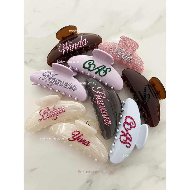 [READYSTOCK] Custom Crystal HairClaw Marble Jepitan Nama Custom Rhinestone | CRUSHONYOU