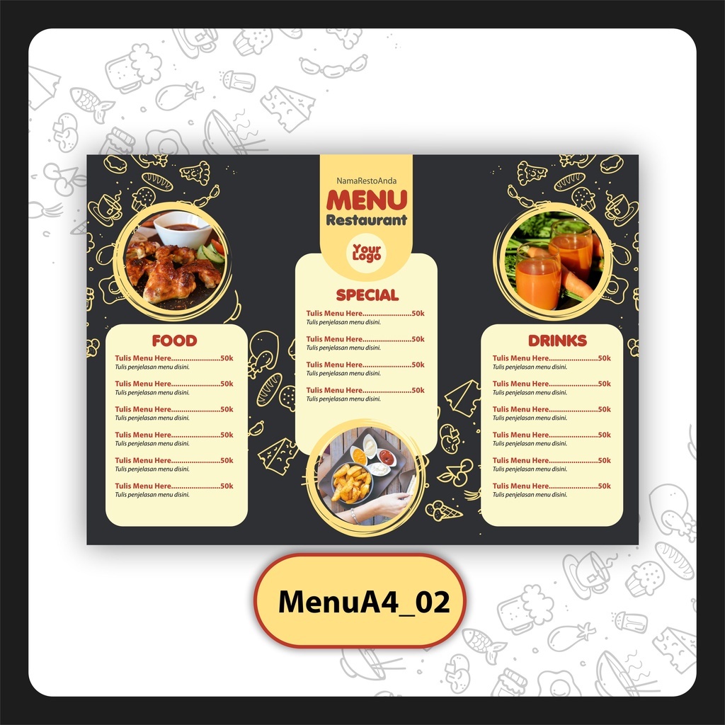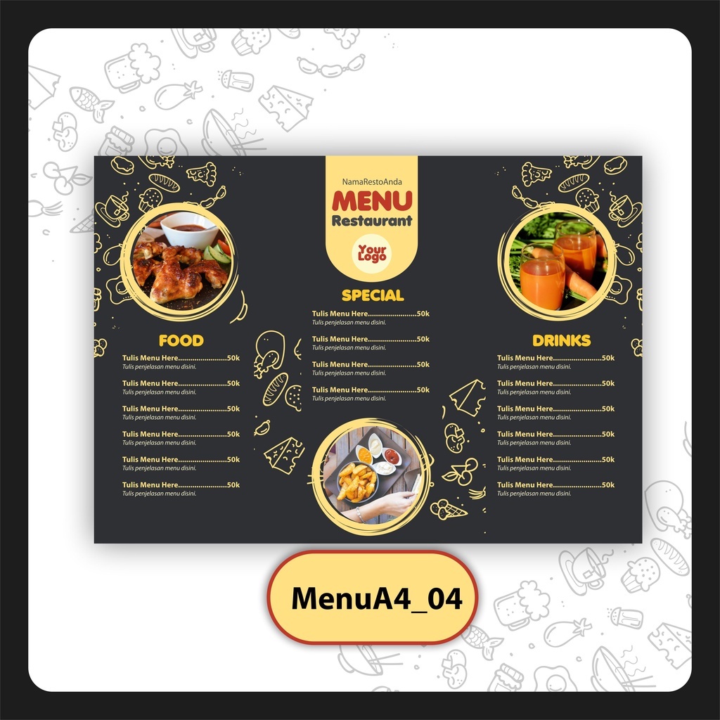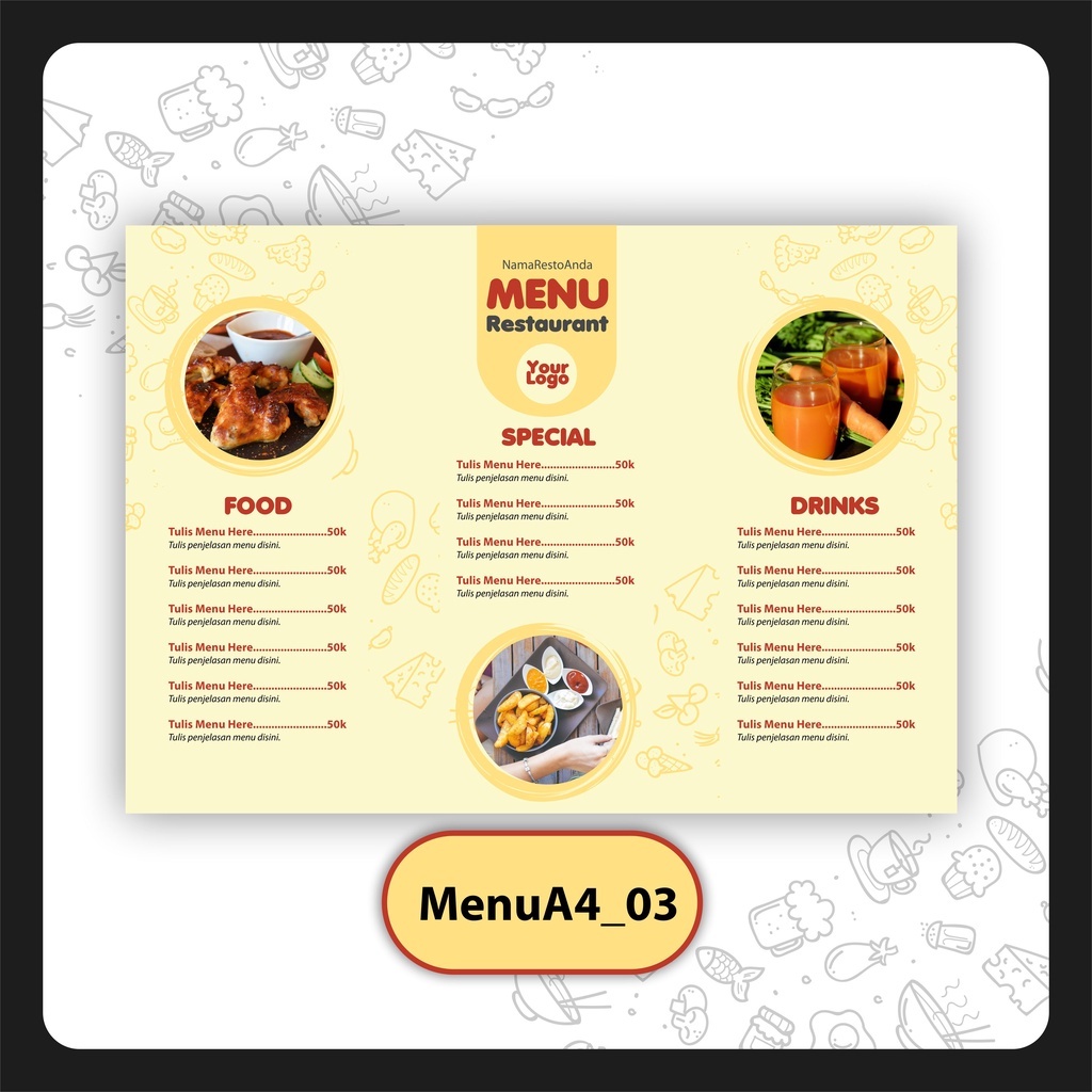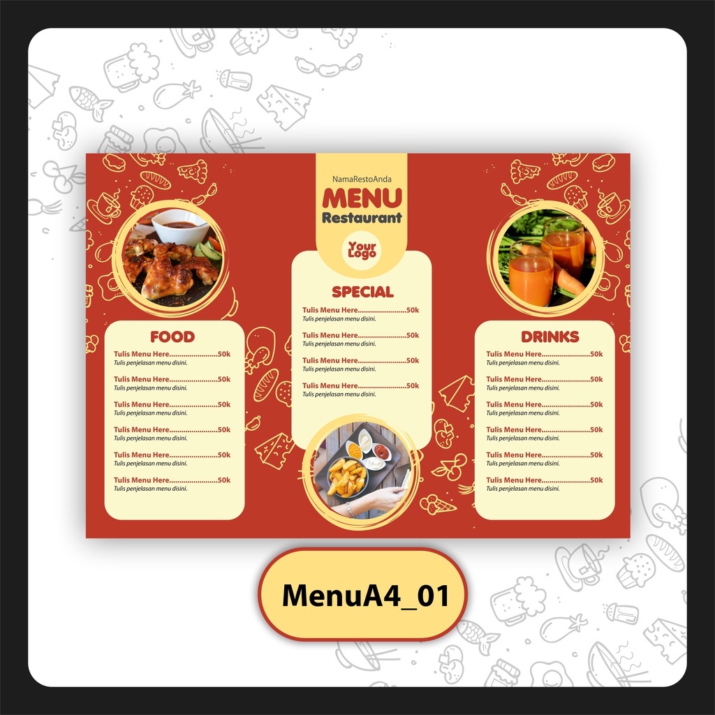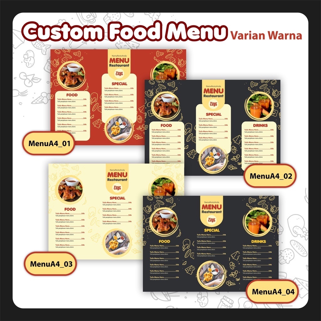 Custom Food Menu (Menu Makanan) Ukuran A4 Bahan Art Carton 260gr