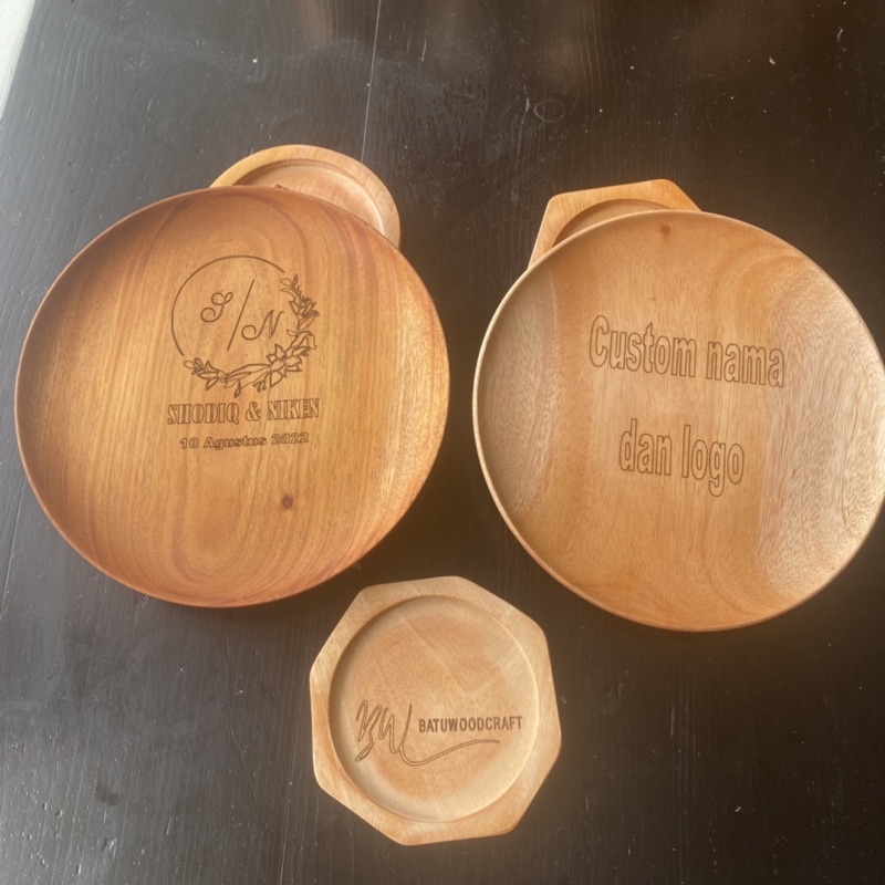 Custom Grafir Piring Kayu 20cm Grafir Piring Kayu Mahoni D20 cm Souvenir Kado