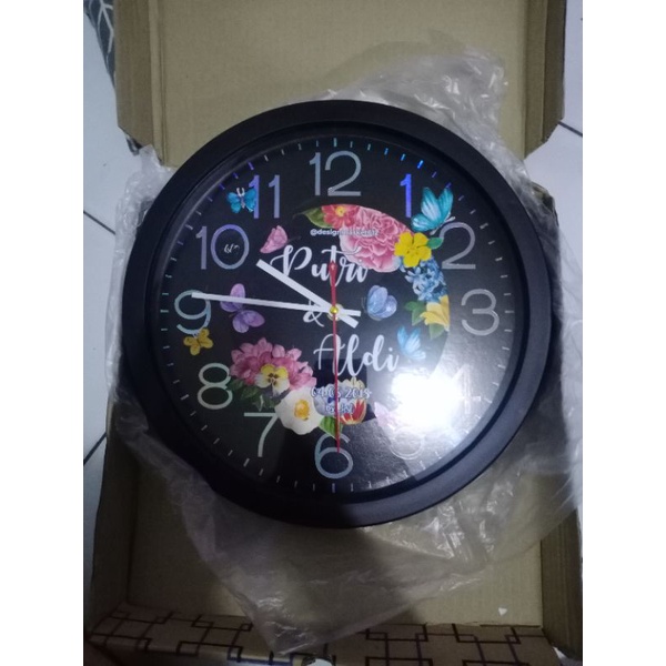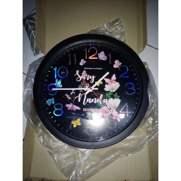 Custom Jam Dinding Kaca Besar Diameter 32CM [Hitam&Putih]