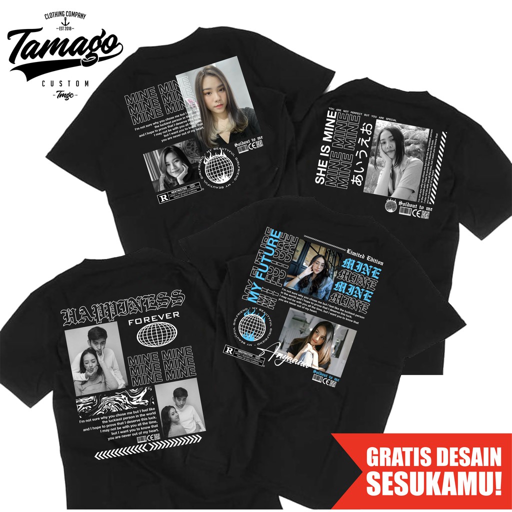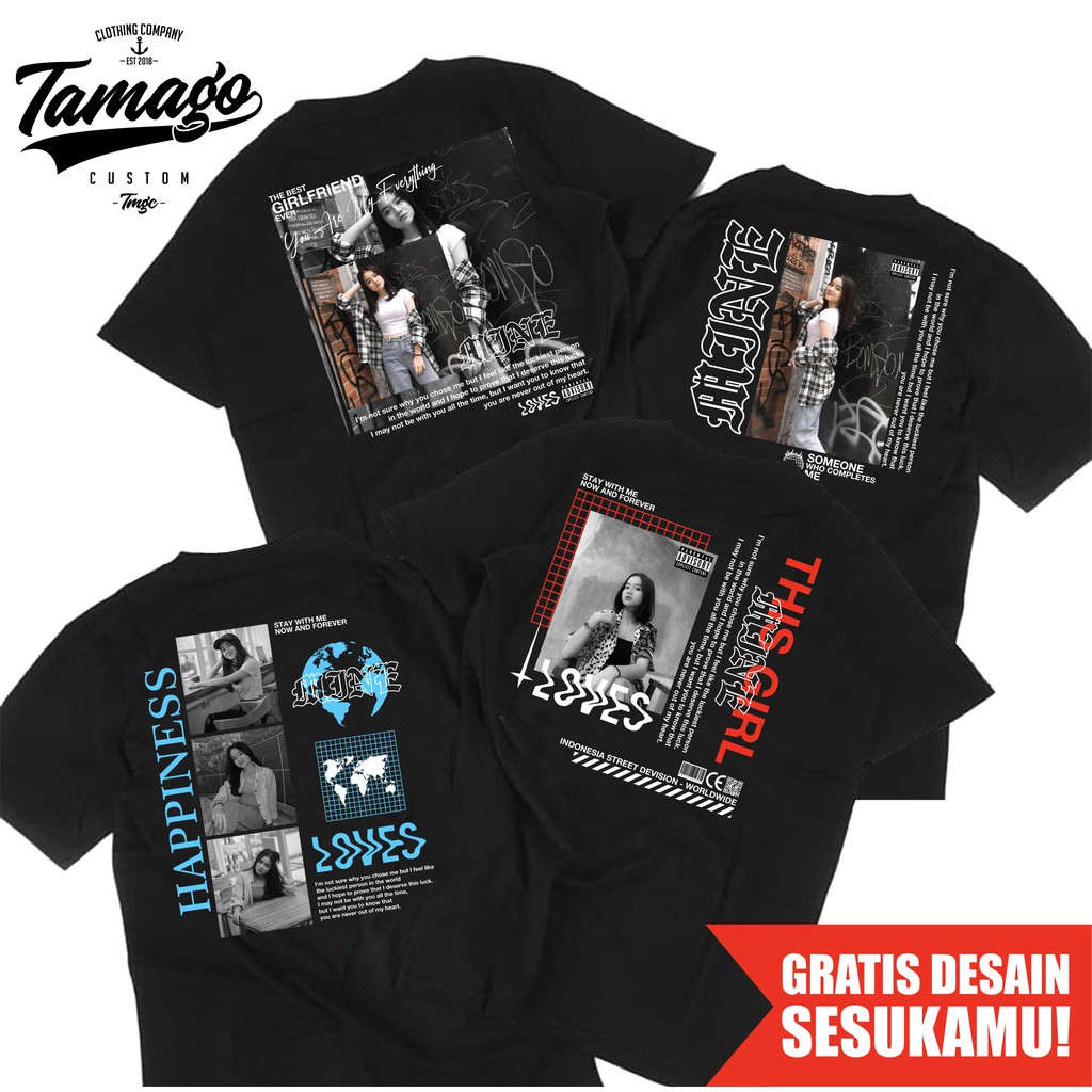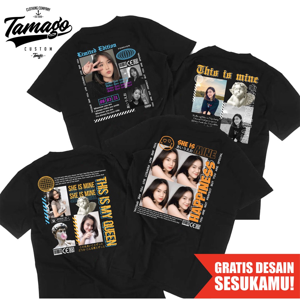 CUSTOM Kaos Desain Aesthetic / Custom Baju Kaos Foto / Kaos Bucin / Bisa ganti foto kamu/ Sablon DTF
