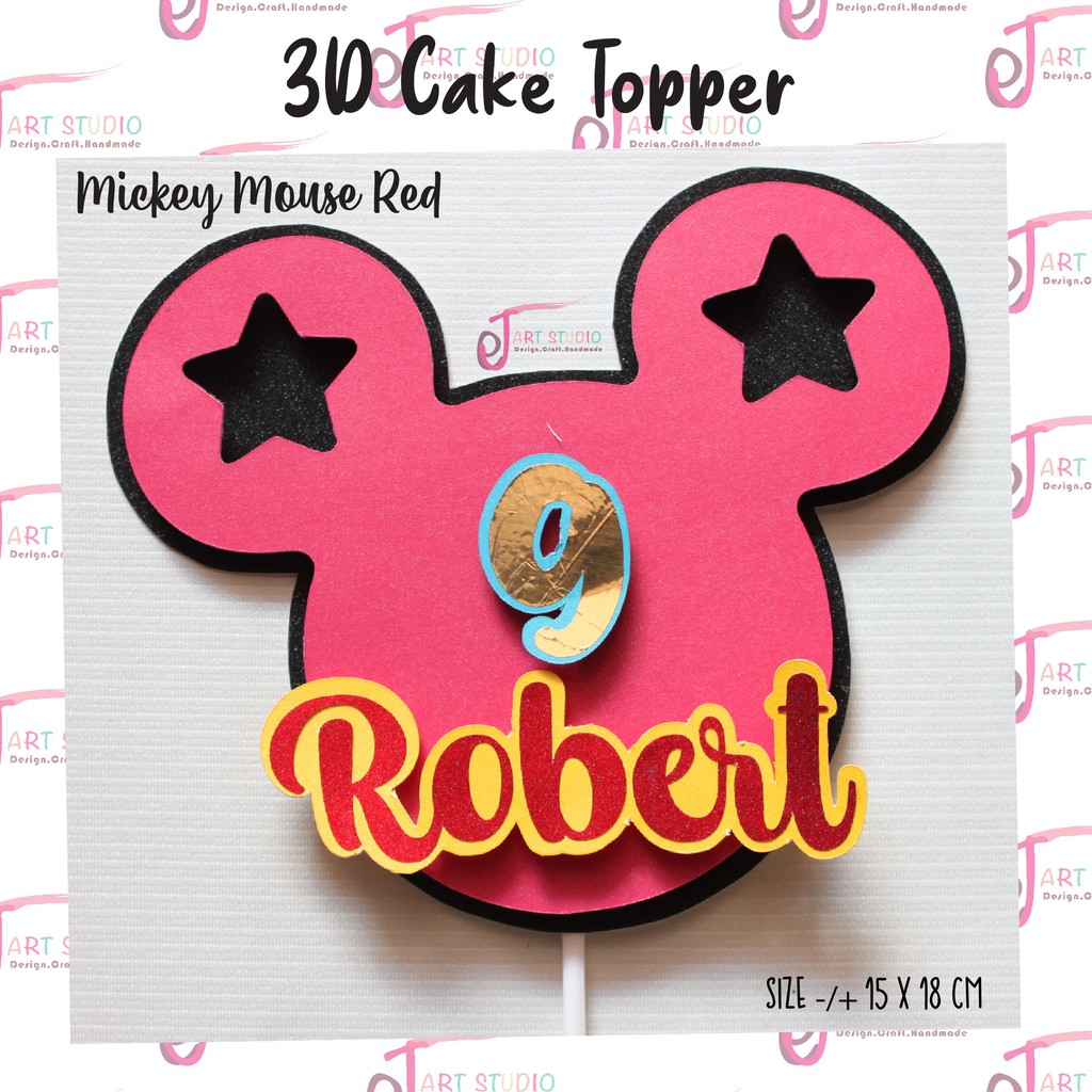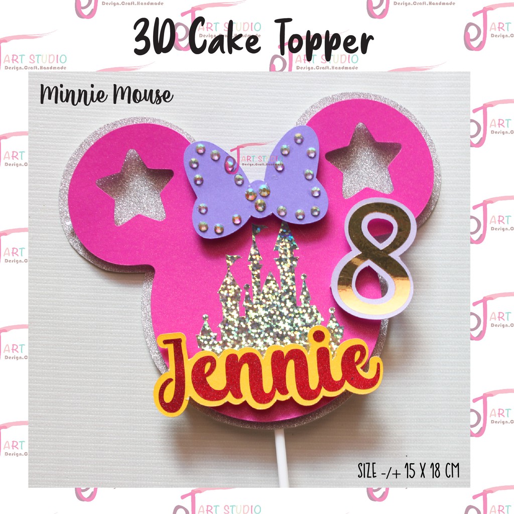 Custom Mickey Minnie Mouse 3D Cake Topper / Glitter Cake Topper