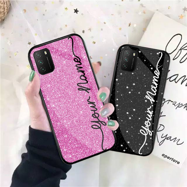 Custom Nama Softcase Glass Glitter Untuk Semua Tipe HP - Softcase Glass - Custom Case Nama - Softcase Custom Nama - Custom Case