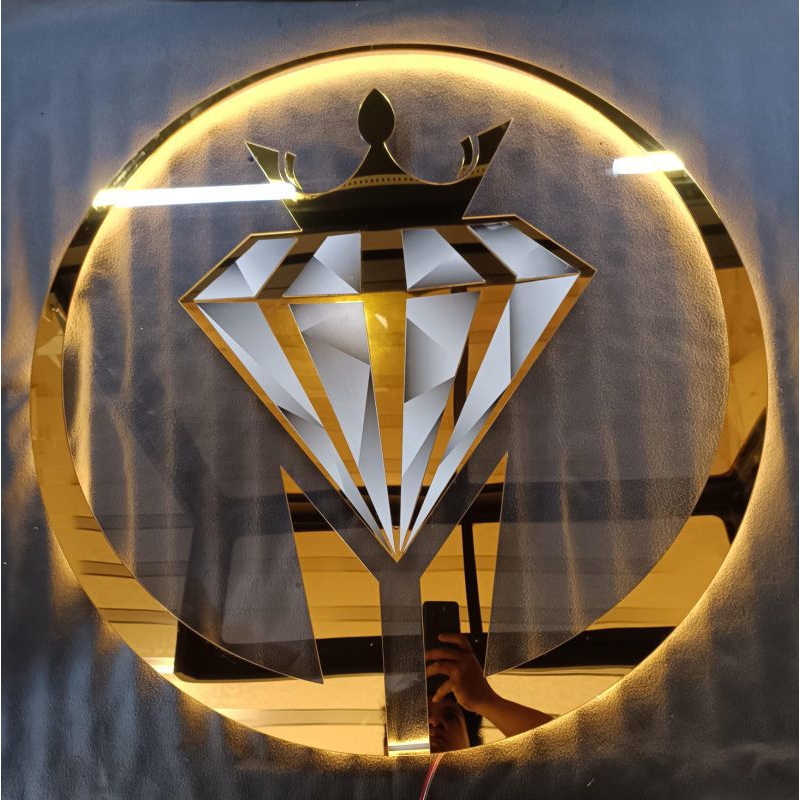 Custom Papan Logo Usaha Akrilik Timbul dengan LED