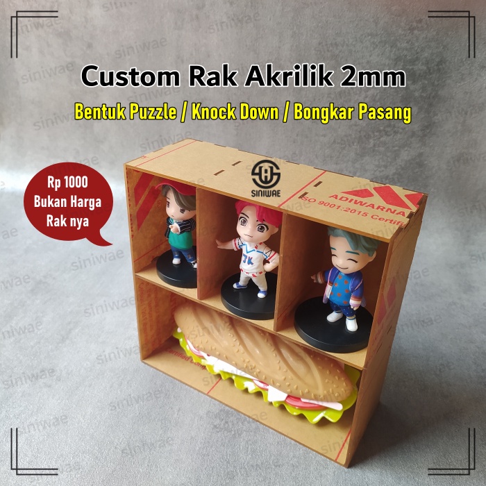Custom Rak Box Display Akrilik 2mm Rak Susun Acrylic Buka Tutup Laci Tempat Uang Meja Kasir