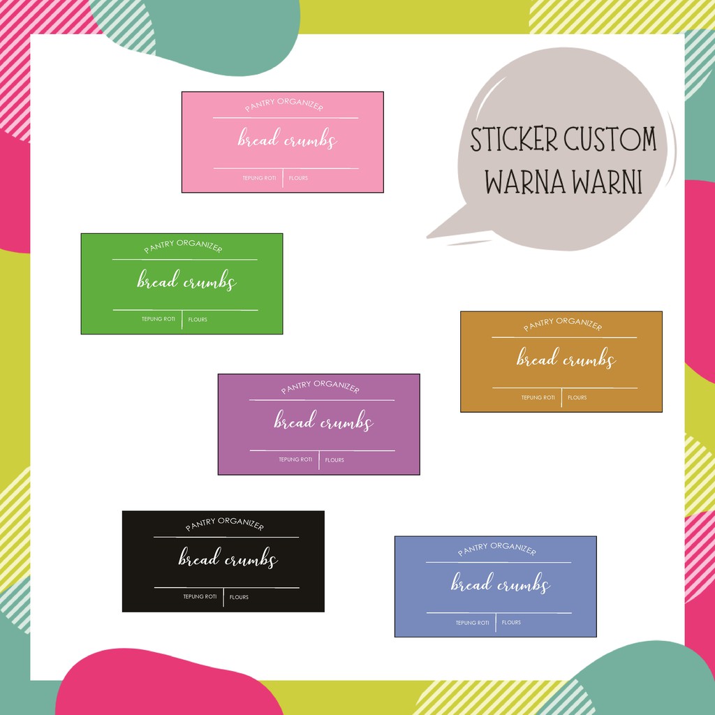 Custom Stiker Label Warna Warni Modern Aesthetic | Custom Stiker Label Pantry