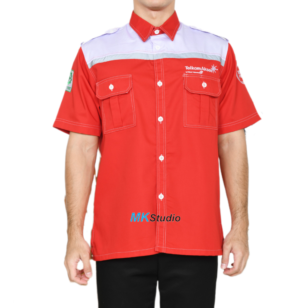 Seragam TelkomAkses Indihome Safety K3 dan Seragam Kombinasi Baju Kerja Pria Kombinasi Lengan Pendek