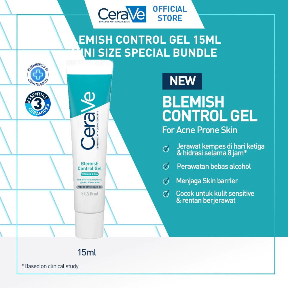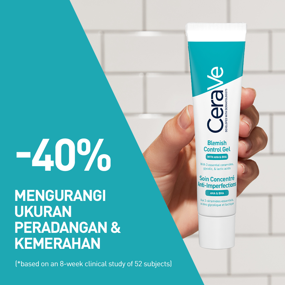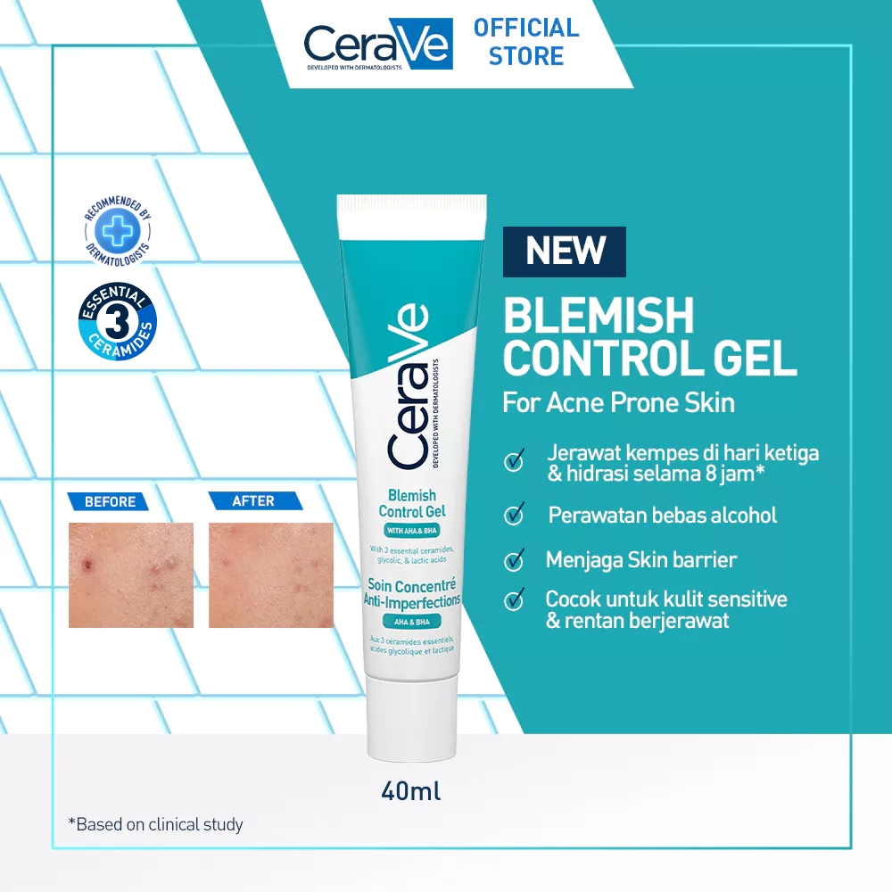 CeraVe Blemish Control Gel 40ml - Gel moisturizer for Acne Prone Skin - Mengurangi Jerawat Dalam 3 Hari dengan 2% Salicylic Acid, AHA/BHA & Niacinamide kulit berjerawat, menyamarkan noda hitam, menjaga skin barrier)
