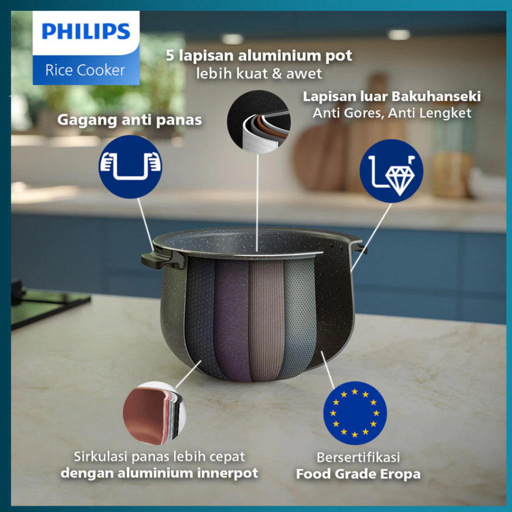 Philips Digital Rice Cooker HD 4812 Magicom 1.8 L - 3000 Digital Series HD4812 /30 18 Menu Masak - Anti lengket