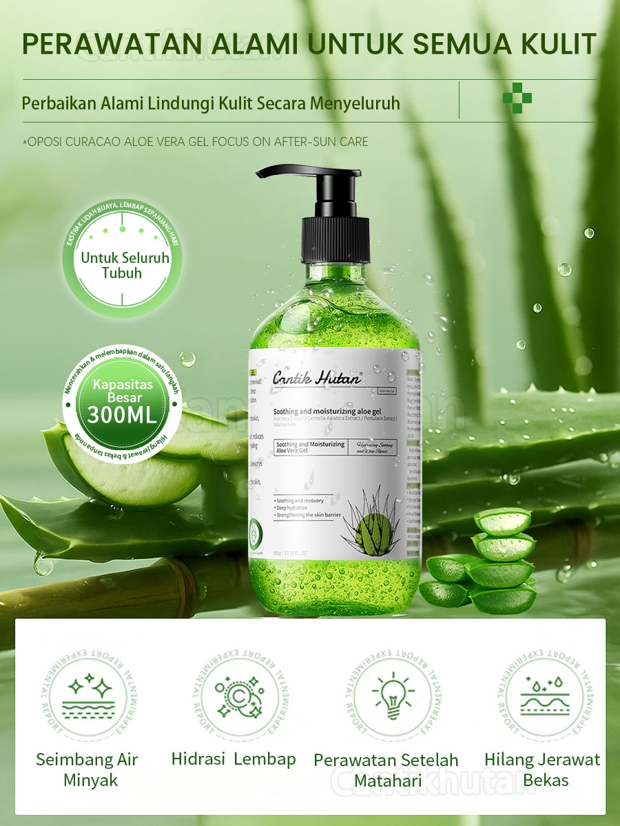 Cantik Hutan Aloevera Gel Wajah 300ml | Lidah Buaya Multipurpose Gel & Melembapkan | Atasi Kulit Iritasi, Kering & Berjerawat | No Alkohol | Aman Untuk Semua Jenis Kulit