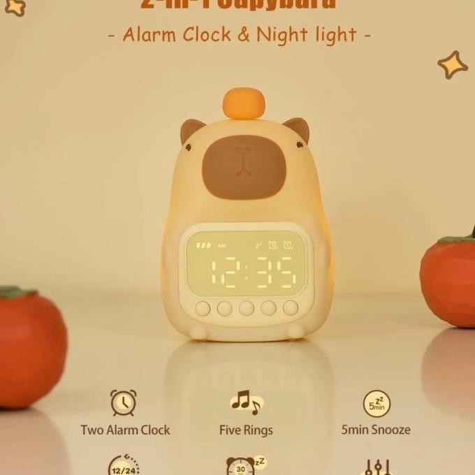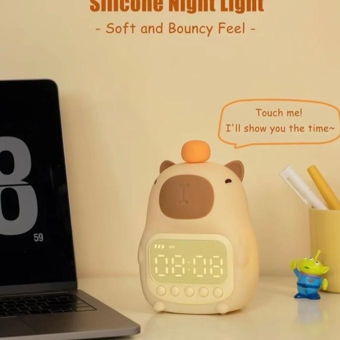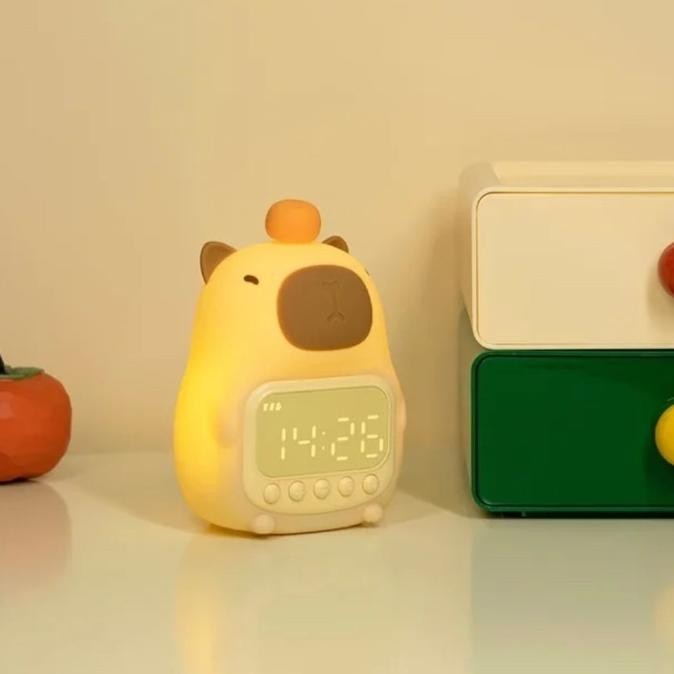 Cute Capybara Night Light Clock Alarm Squishy Model / Lampu Tidur Jam Digital