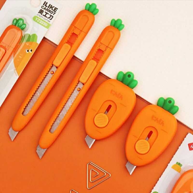 Cutter Mini Portable Bentuk Carrot Wortel Mini Cutter Polos Travel Kit Pemotong Kertas Paper Cutter Lucu Bentuk Awan Warna Pastel Untuk Membuka Paket