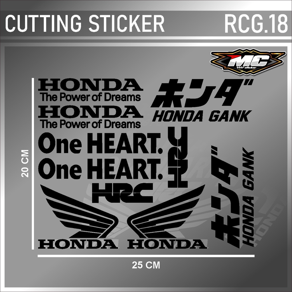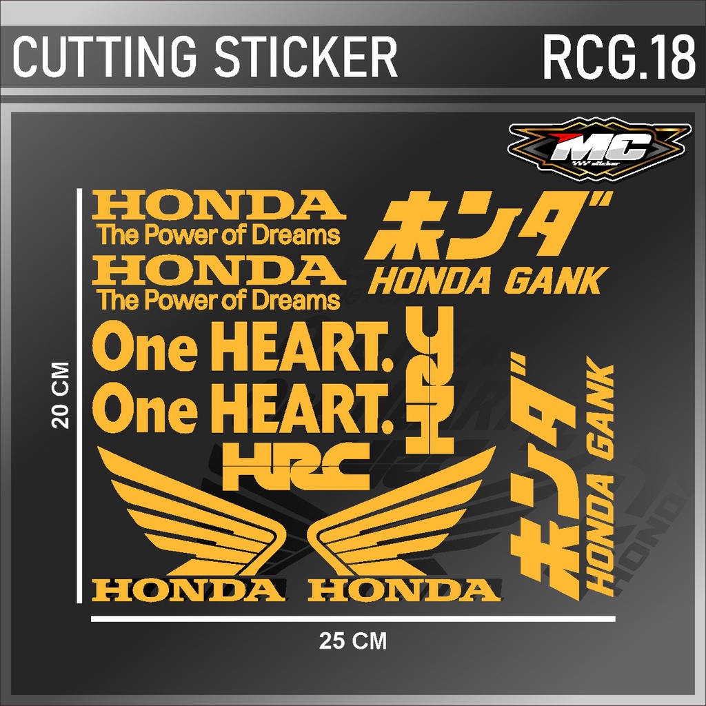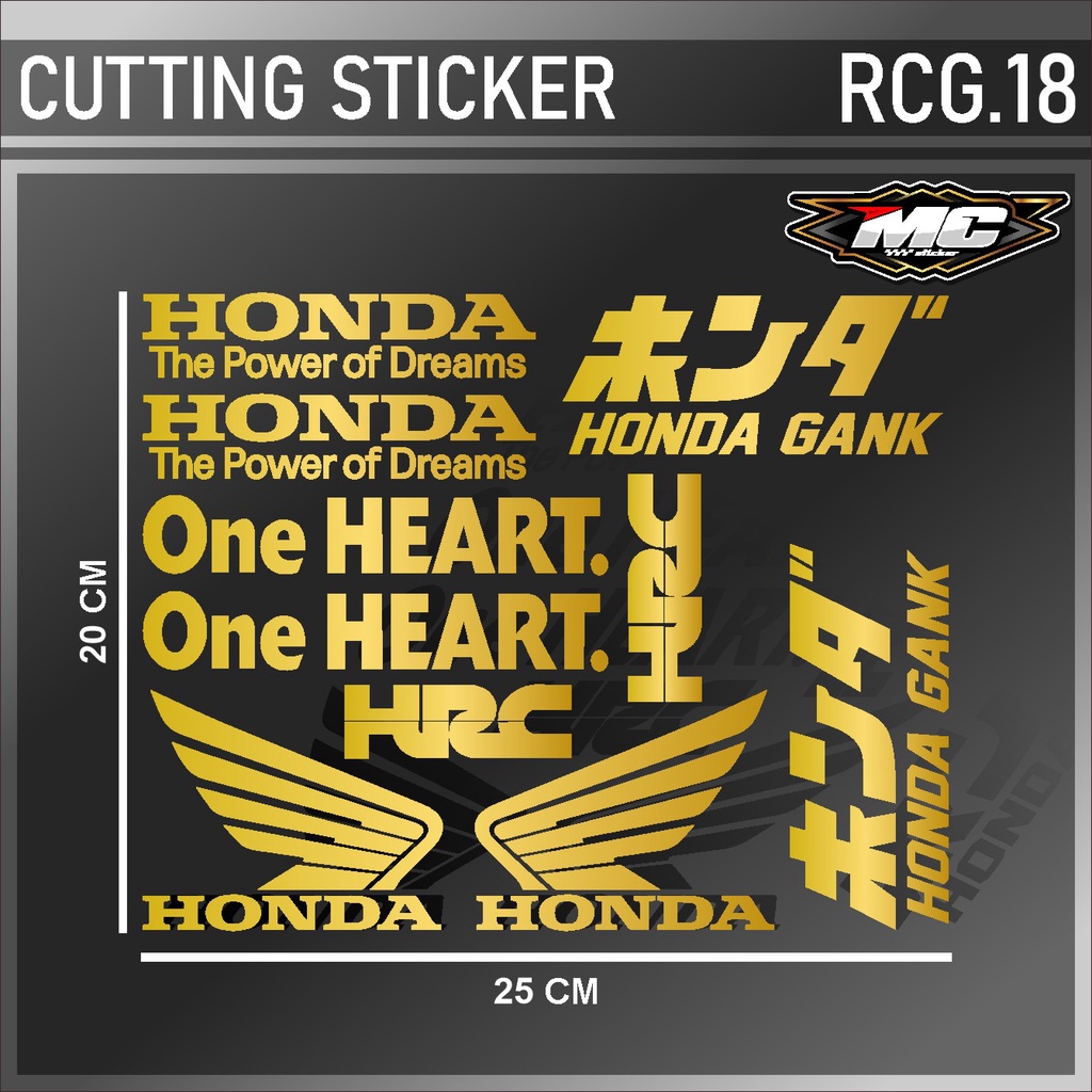 Cutting Sticker Pack Sponsor Racing Isi 10 PCS - Aksesoris Motor Sticker Lis Variasi HONDA GANK, ONE HEART, HRC, LOGO SAYAP HONDA, HONDA THE POWER OF DREAMS Hologram Laser Chrome Pelangi Reflektif Nyala Gold Dan Solid MC RCG 18