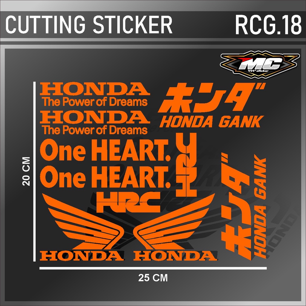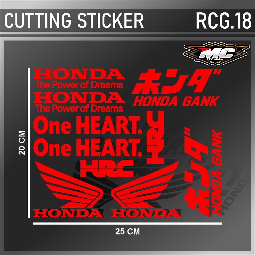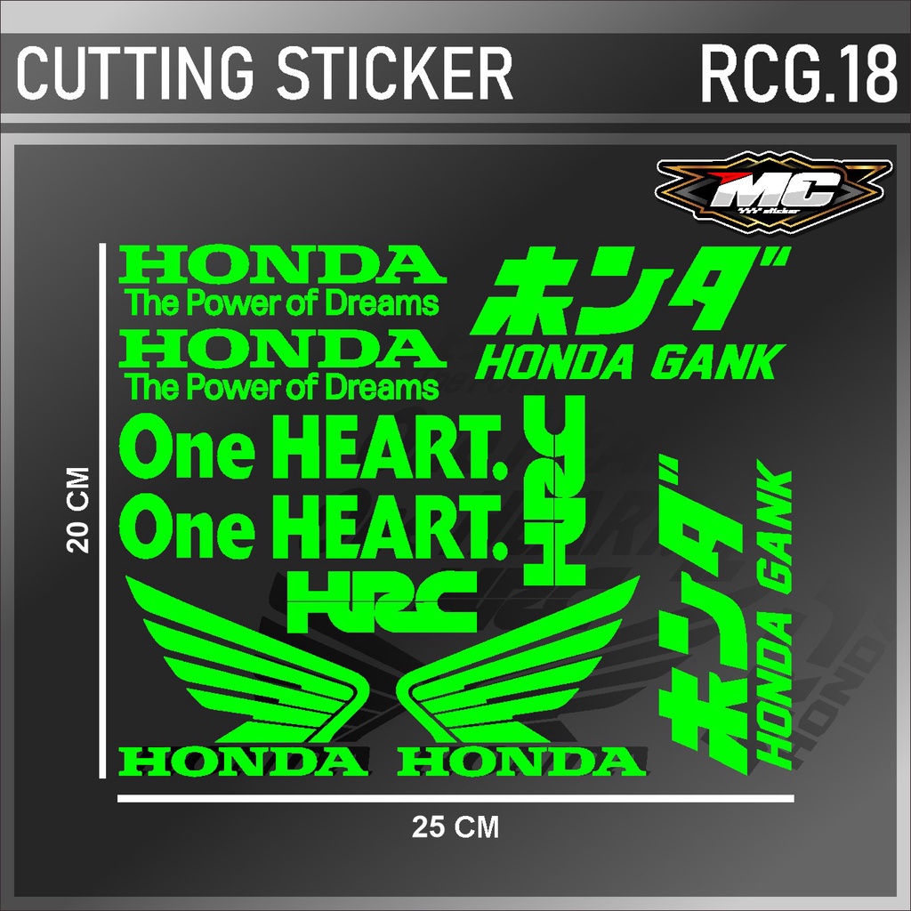 Cutting Sticker Pack Sponsor Racing Isi 10 PCS - Aksesoris Motor Sticker Lis Variasi HONDA GANK, ONE HEART, HRC, LOGO SAYAP HONDA, HONDA THE POWER OF DREAMS Hologram Laser Chrome Pelangi Reflektif Nyala Gold Dan Solid MC RCG 18