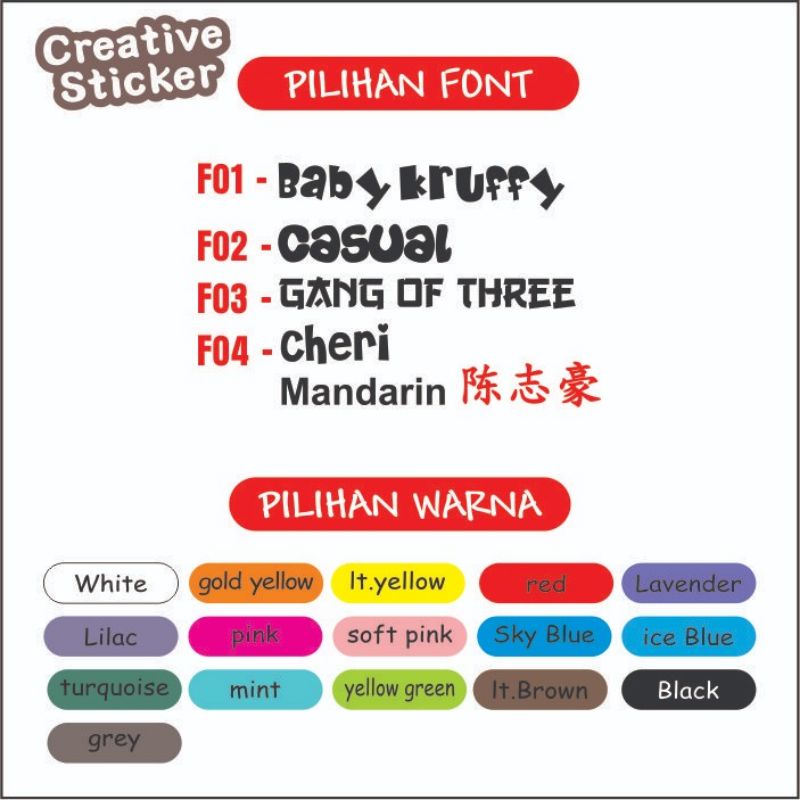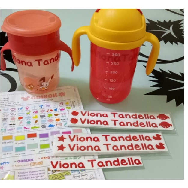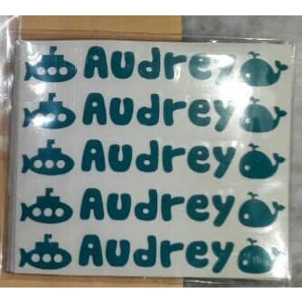 Cutting Sticker mini Nama Waterproof Sticker Nama 14 huruf 2 gambar Stiker Nama Mini | Sticker Nama Anti AIr Murah | Label Nama