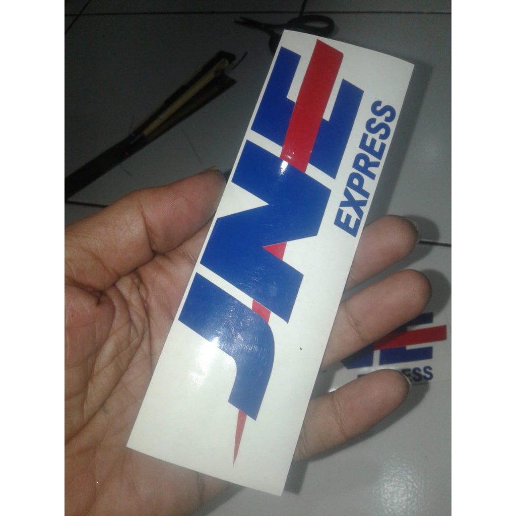 Cutting stiker logo JNE Express ukuran 15 x 5 cm Rp. 4000 dua warna