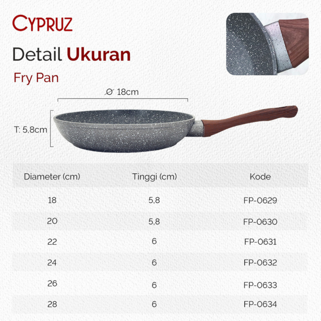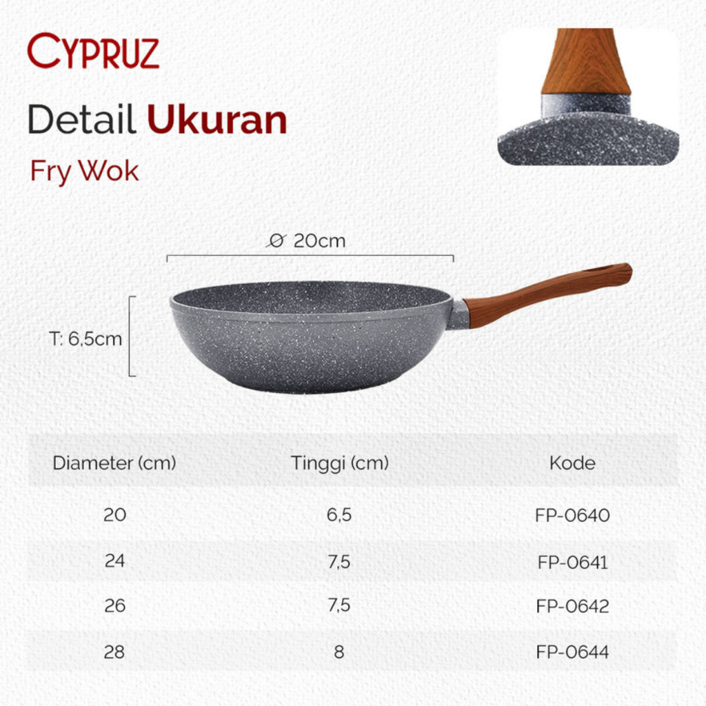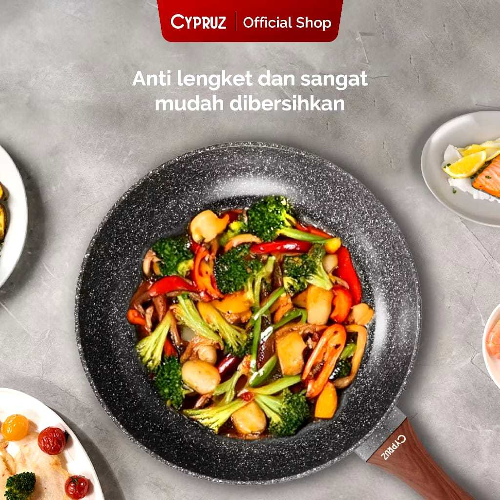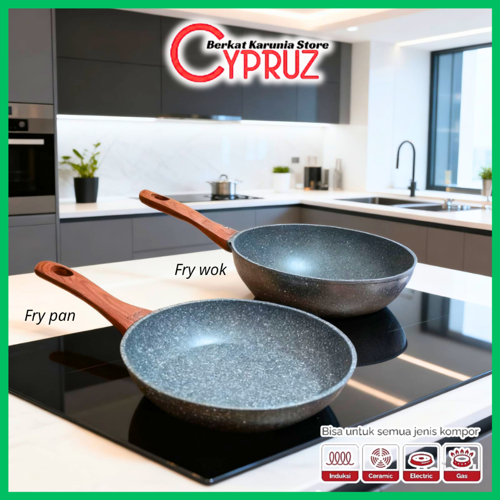 Cypruz Cookware Fry Pan & Fry Wok Marble Wajan Anti Lengket Kompatibel Semua Kompor Original