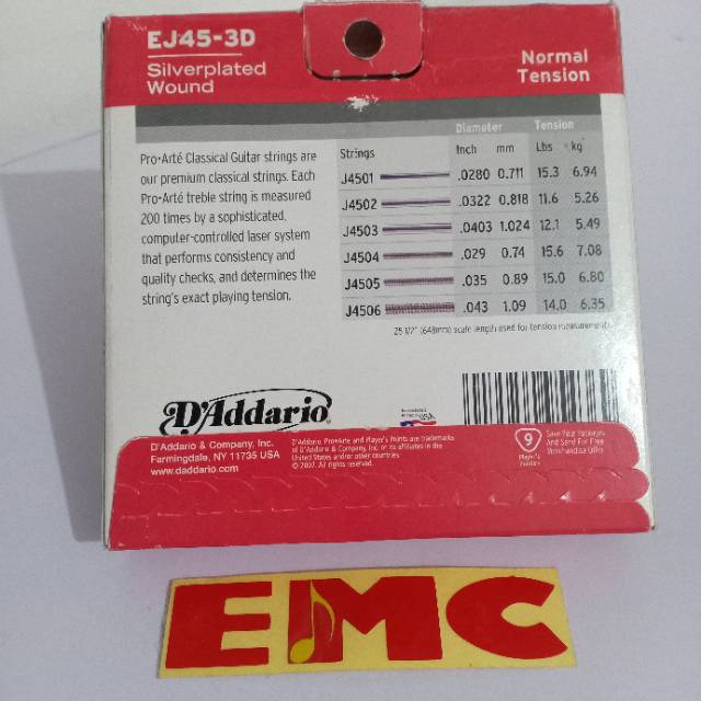 D'Addario Pro Arte EJ45-3D, Classical Guitar String ( 3set )