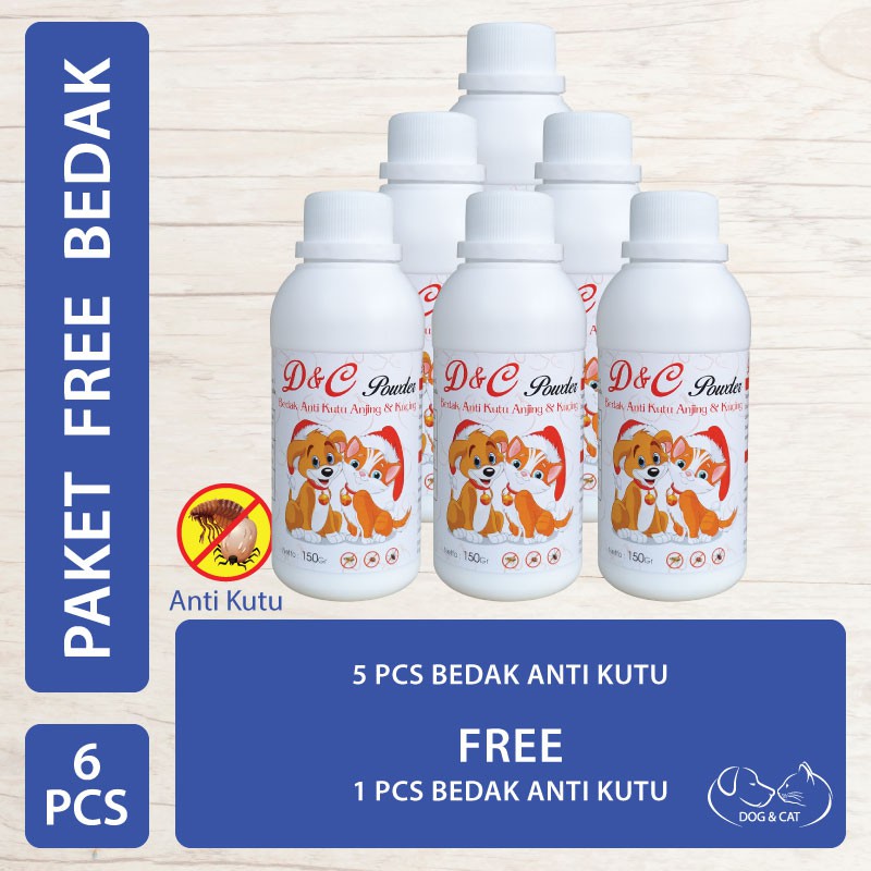 D&C Bedak Anjing dan Kucing Anti Kutu 150 Gram Beli 5 Gratis 1