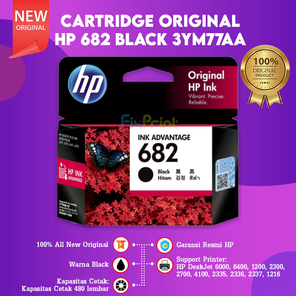FixPrint Cartridge Tinta HP 682 Black Color Original Printer Deskjet 2335 2336 2337 1216 2875 2775