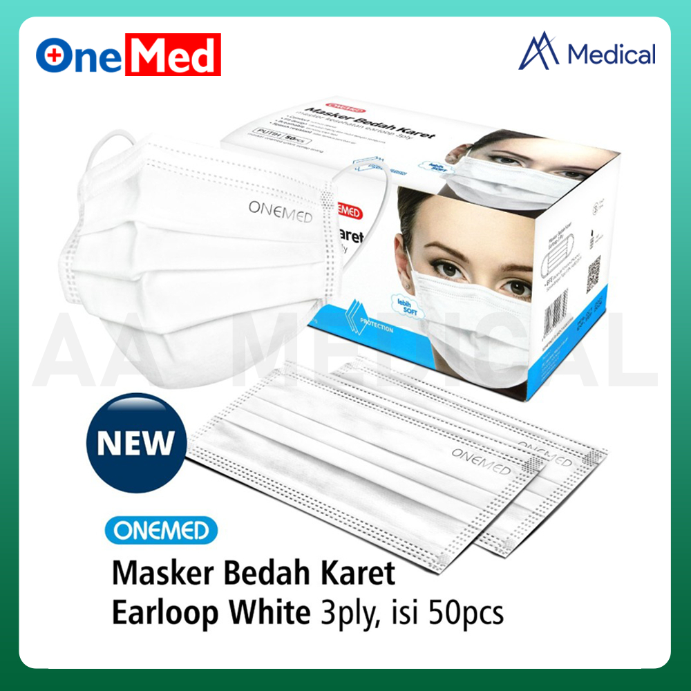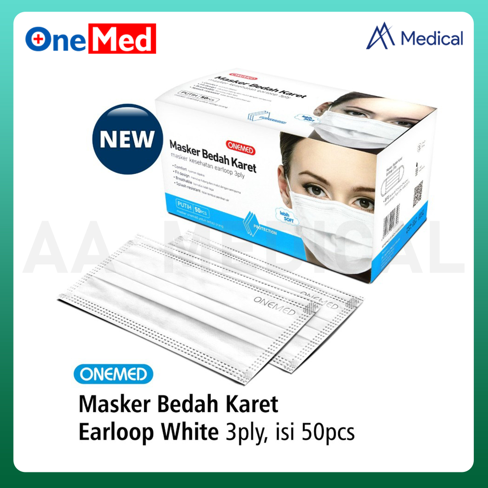 ONEMED Masker Medis Earloop Surgical Mask Putih 3 Ply Box isi 50 Pcs