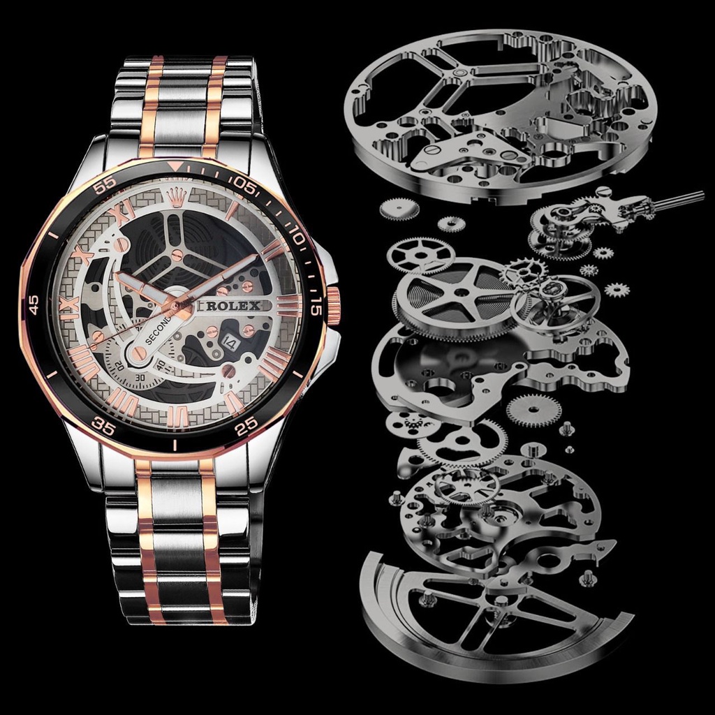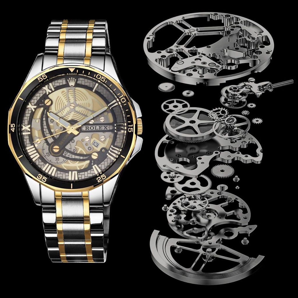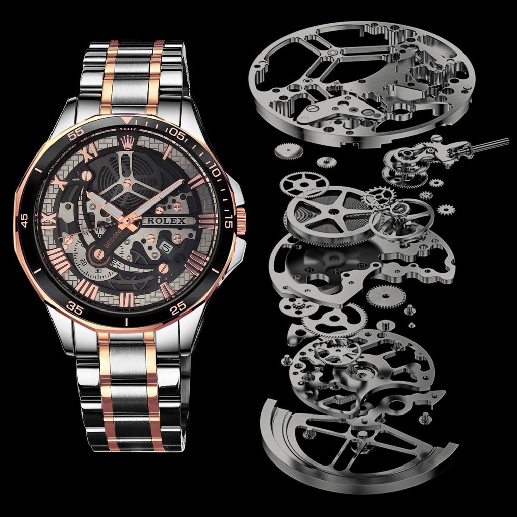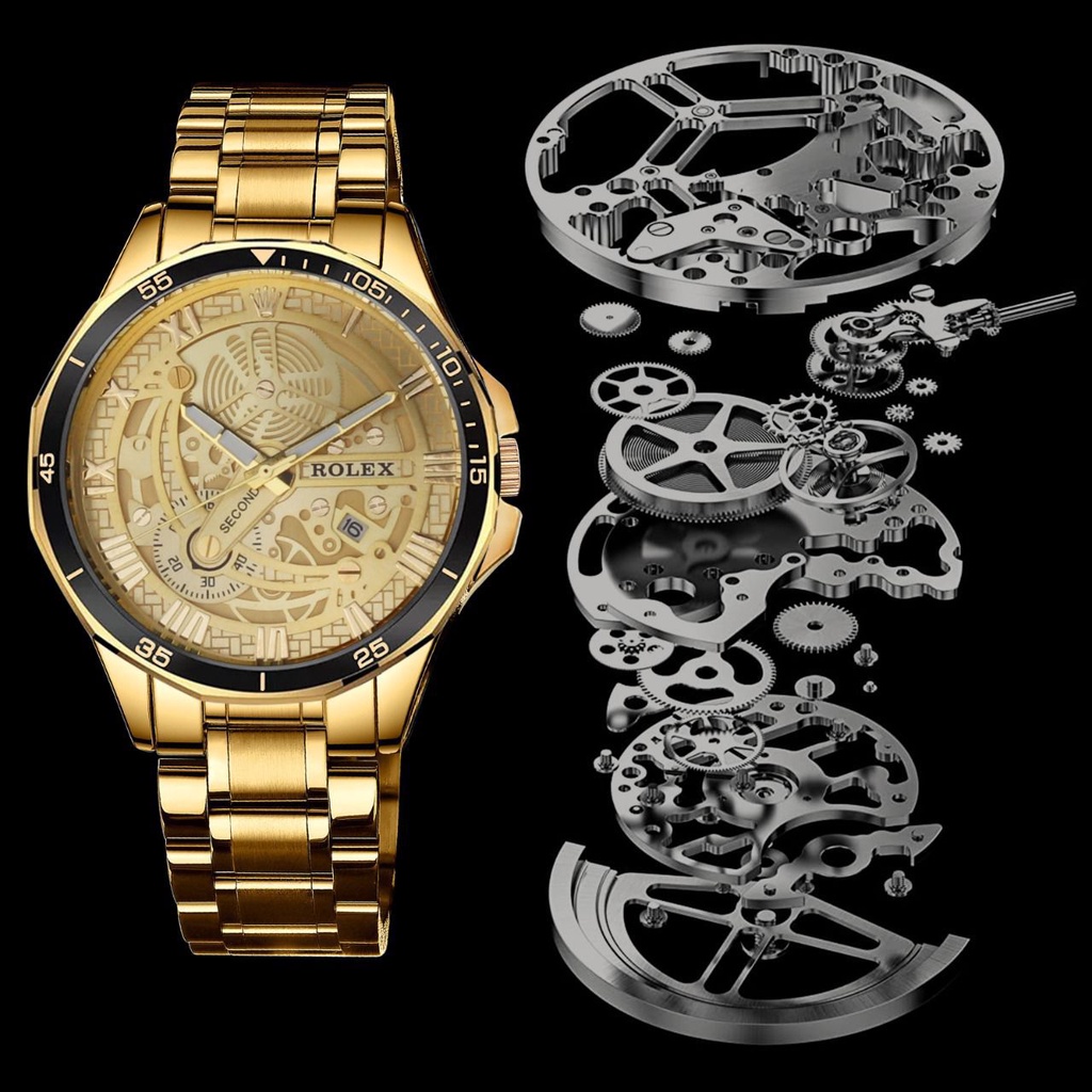 {COD✔️} PREMIUM ! Jam Tangan Elegan Pria ROLEX Rantai Stainless Steel - Tanggal Aktif - jam tangan fashion cowok produk baru !! HUX KZ