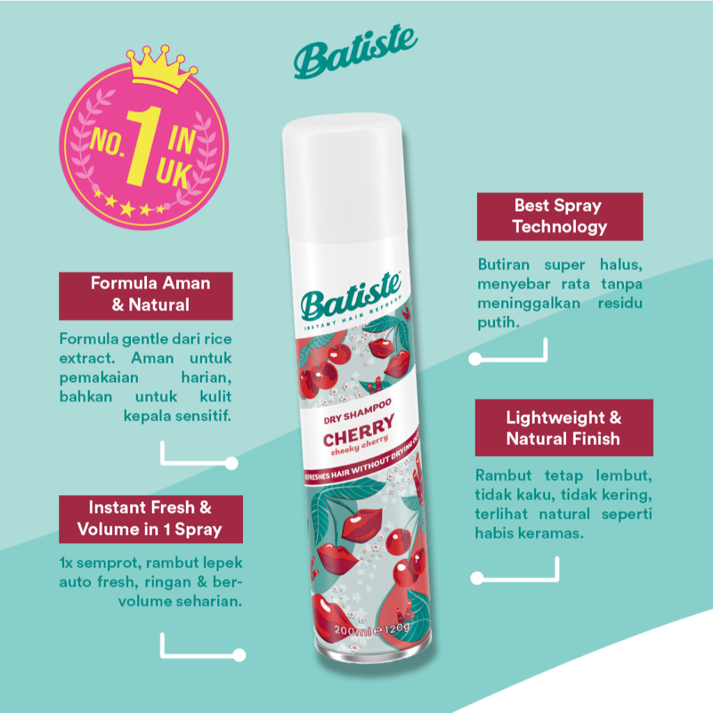 Batiste Fruity & Cheeky Cherry Dry Shampoo 200ml (Shampoo Kering Tanpa Bilas)