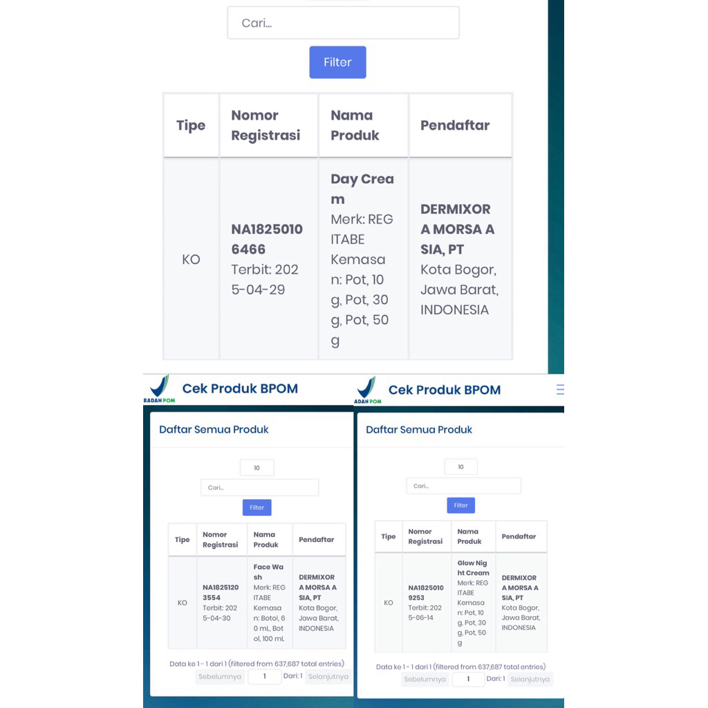 Night cream Regitabe BPOM