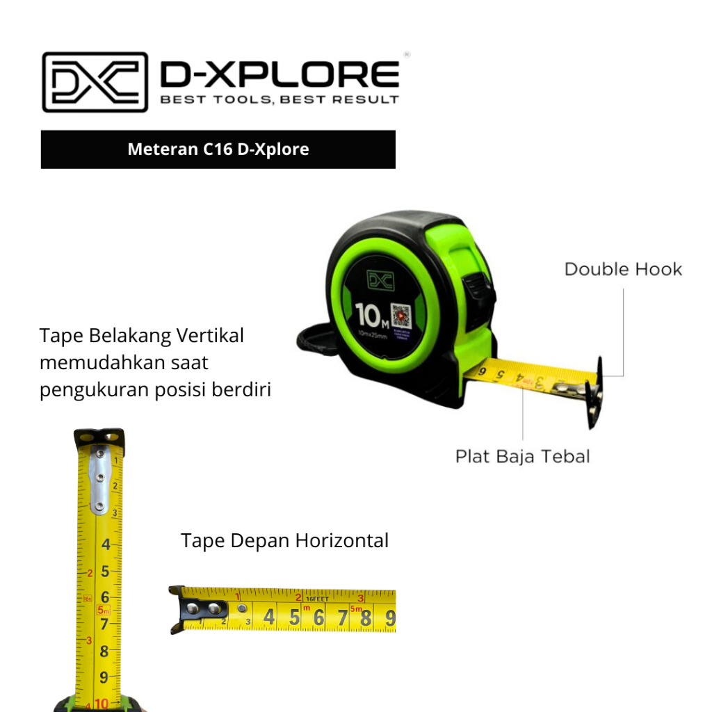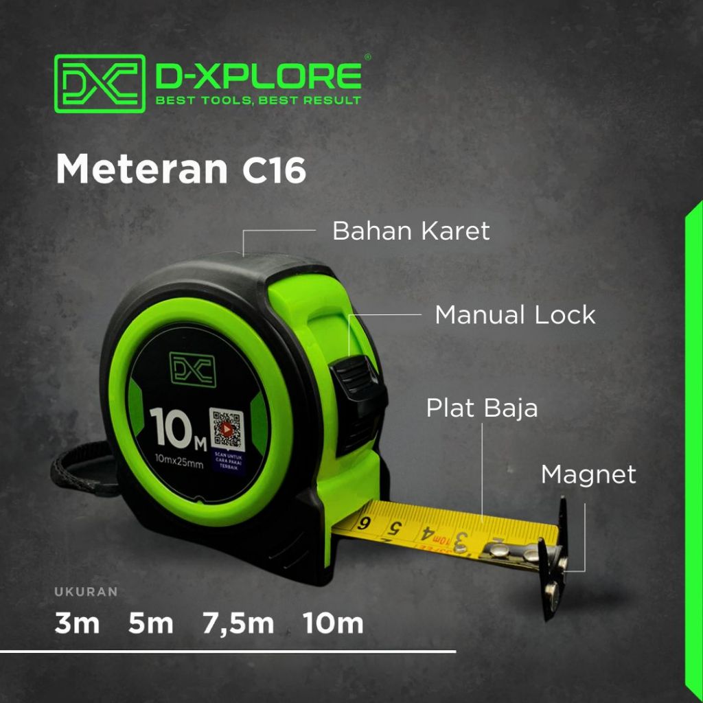 D-XPLORE METERAN KARET Uk 3m 5m 7.5m 10m / ROL METER / METERAN TUKANG / MEASURING TAPE C16 / Meteran Tukang Baja Paling Bagus Pita Pengukur Tape Measure Bahan Karet ABS