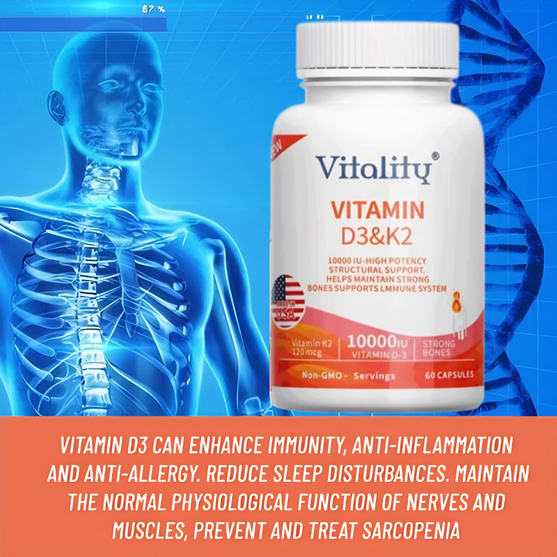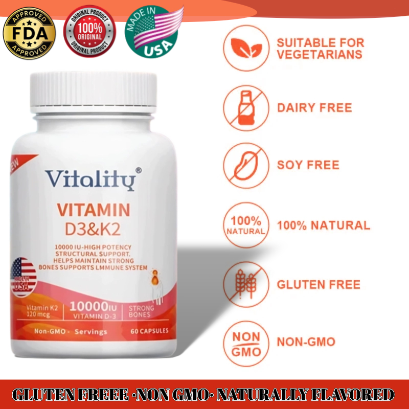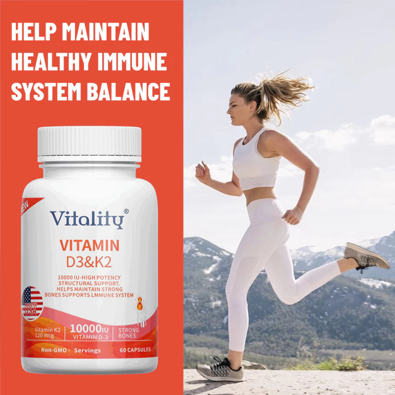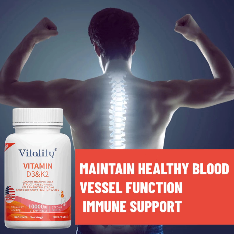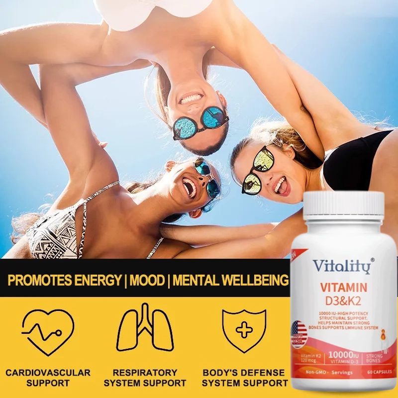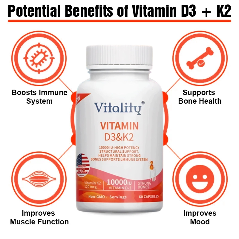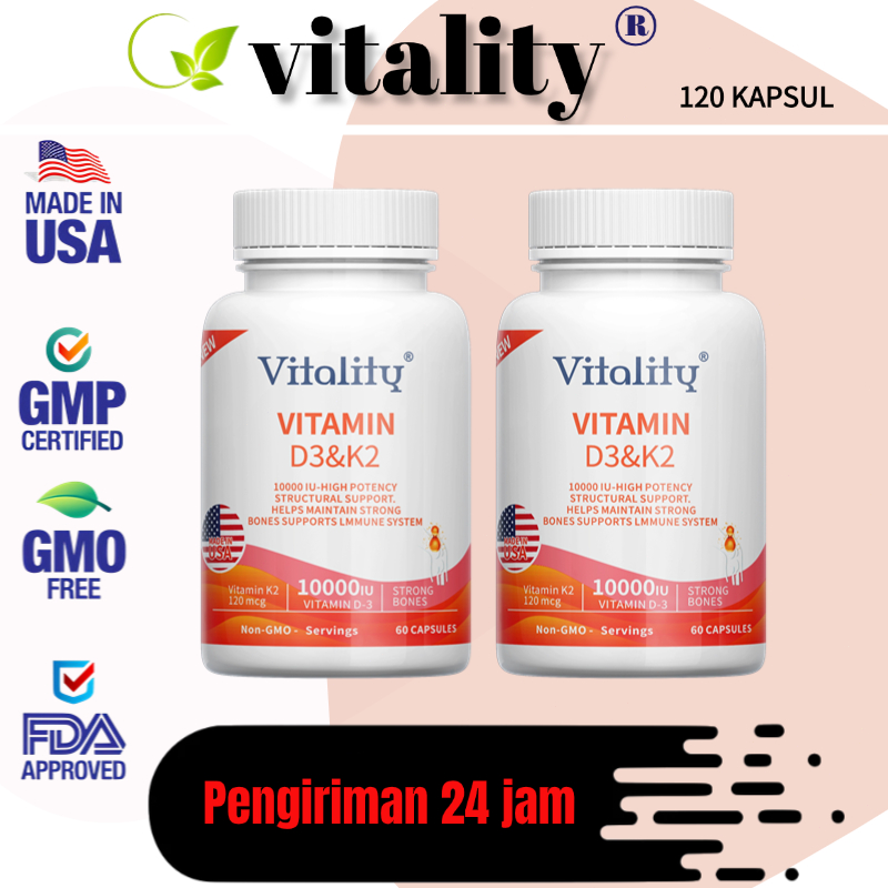D3+K2, 10000 IU IU, meningkatkan daya tahan tubuh, mendukung kesehatan tulang, jantung, 60 Kapsul