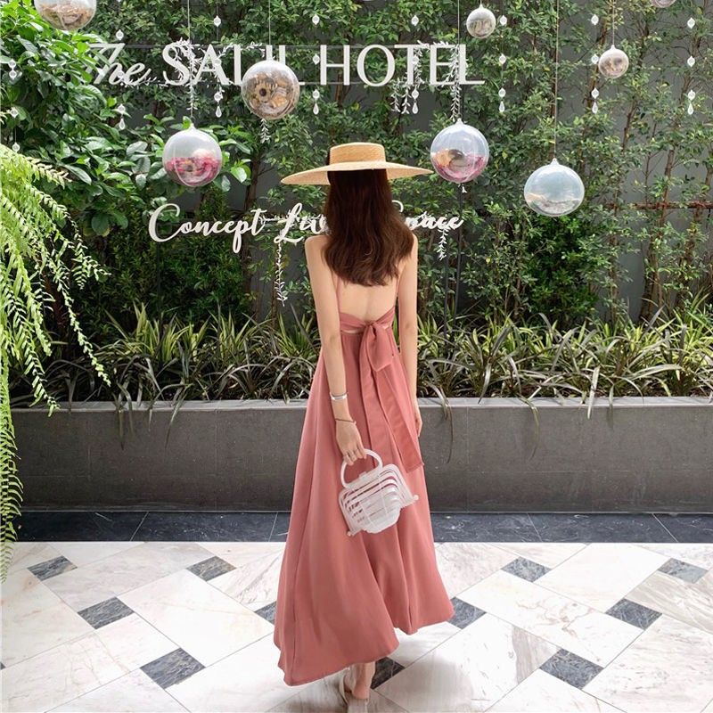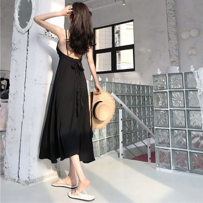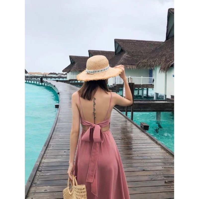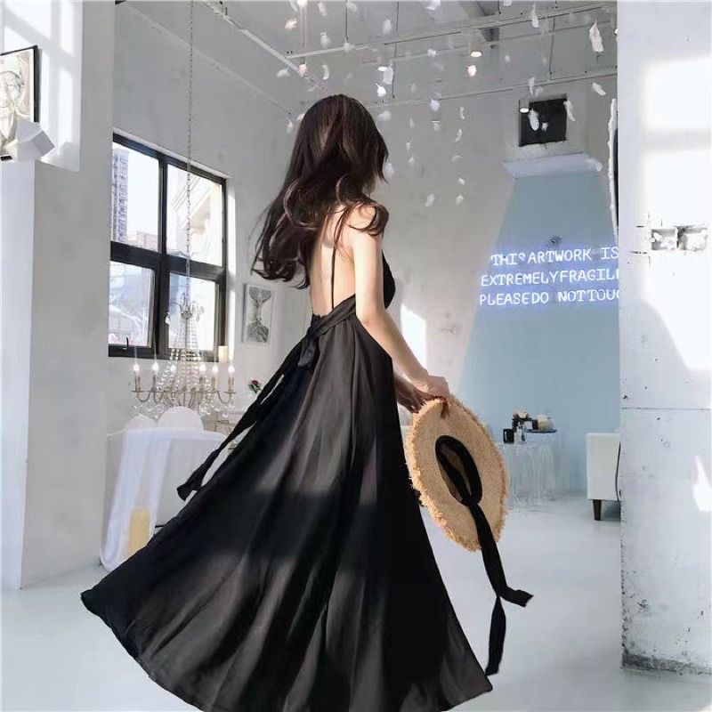 D5 korean long dress backless / korean vintage maxi dress / dress pantai / maxi dress