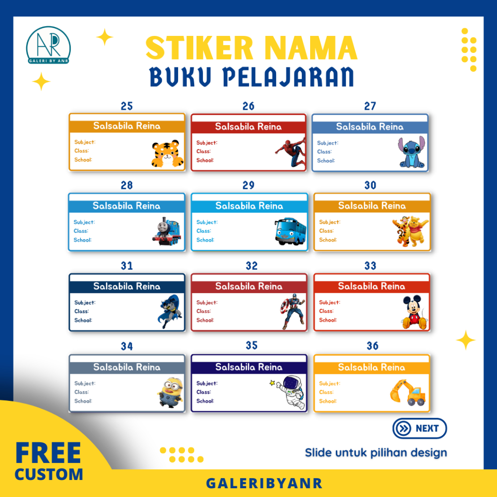 D66 Sticker buku sekolah custom | Stiker mata pelajaran stiker nama stiker mapel Label buku pelajaran sekolah